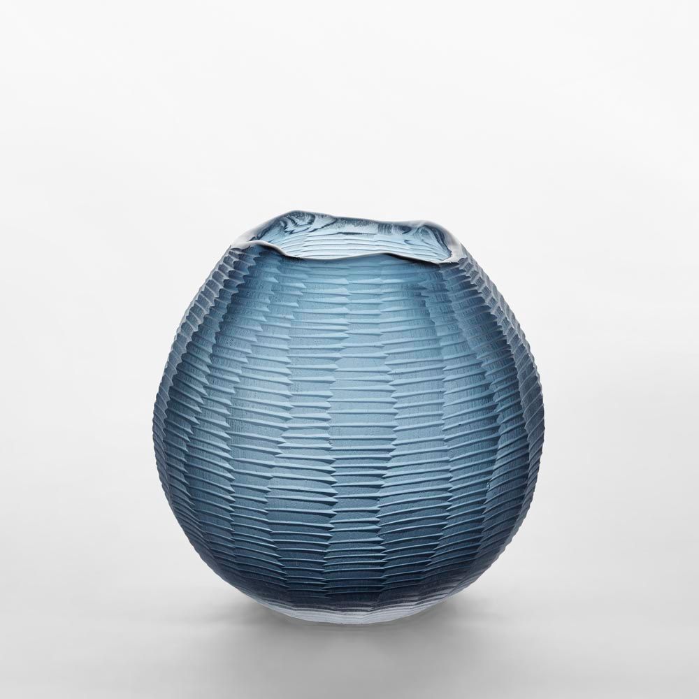 Artem Glass Ball Vase Blue Carved