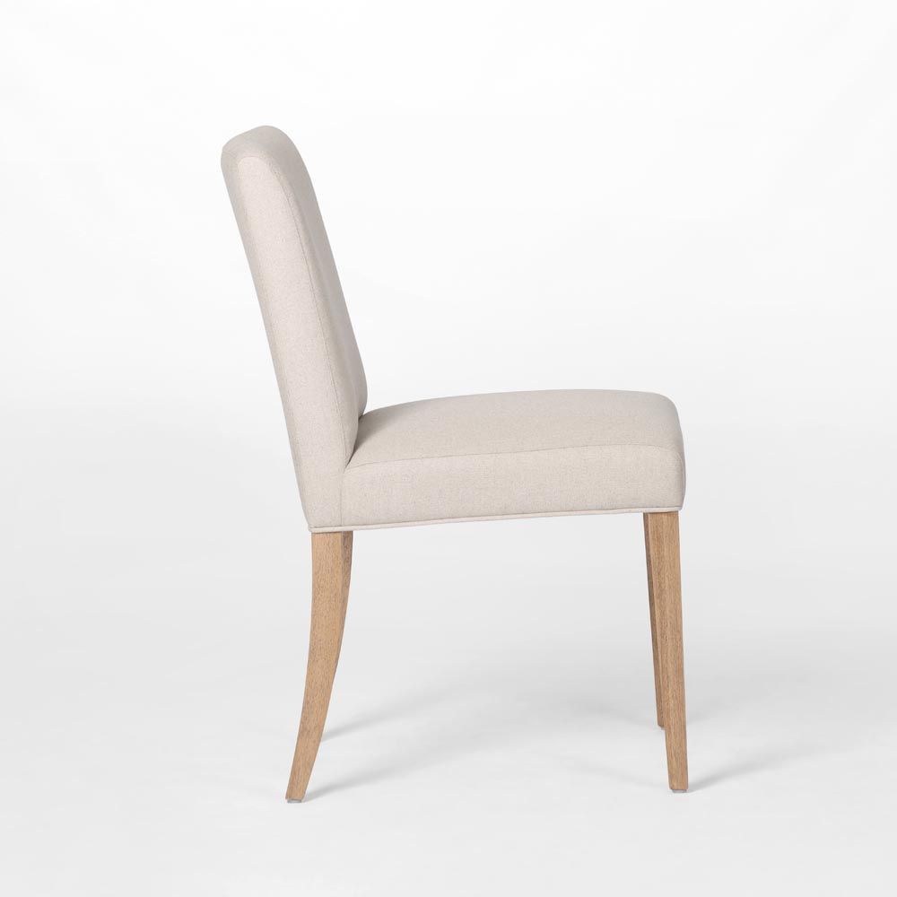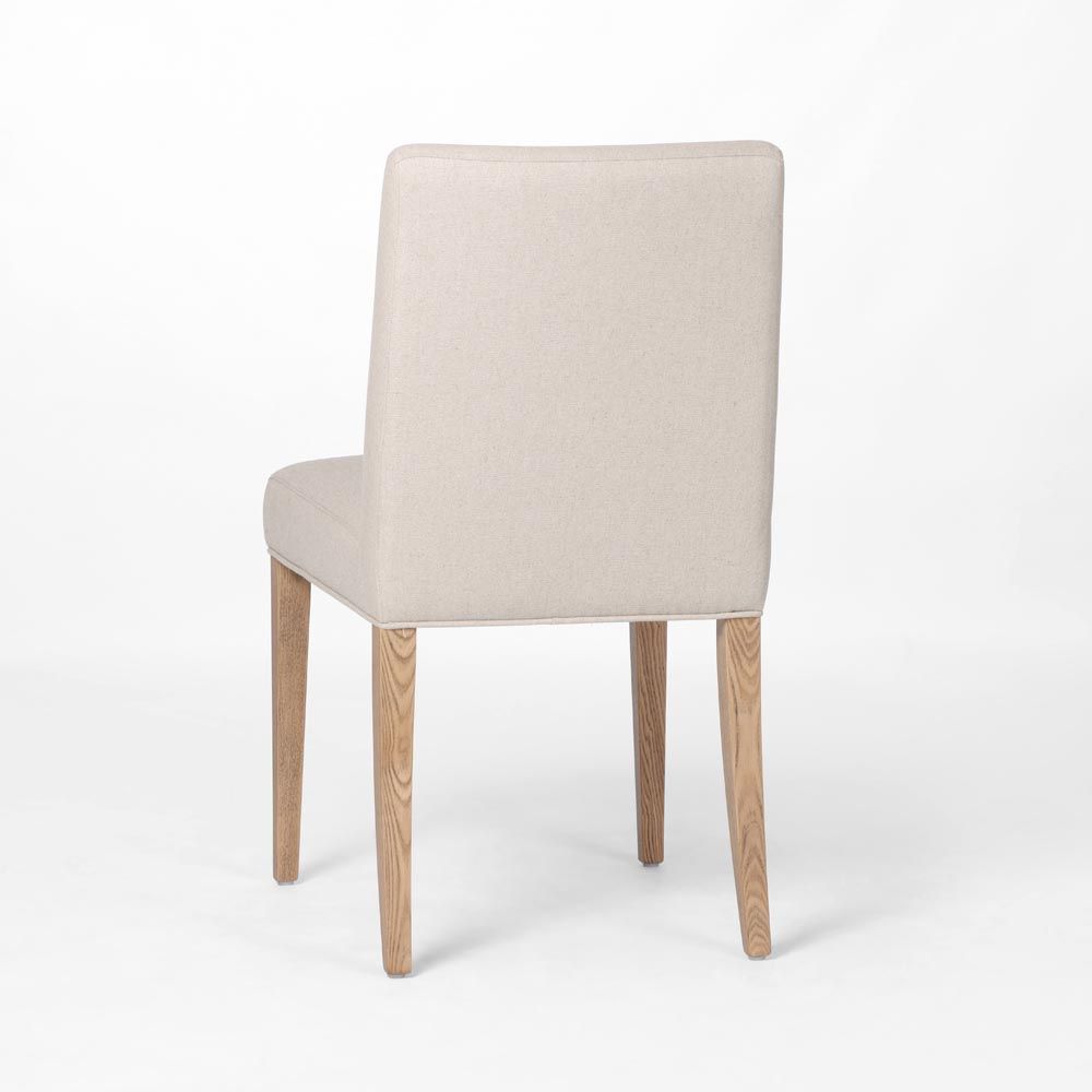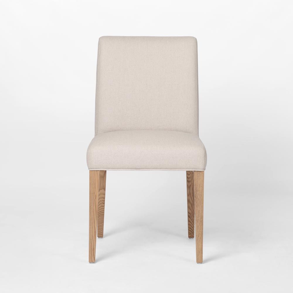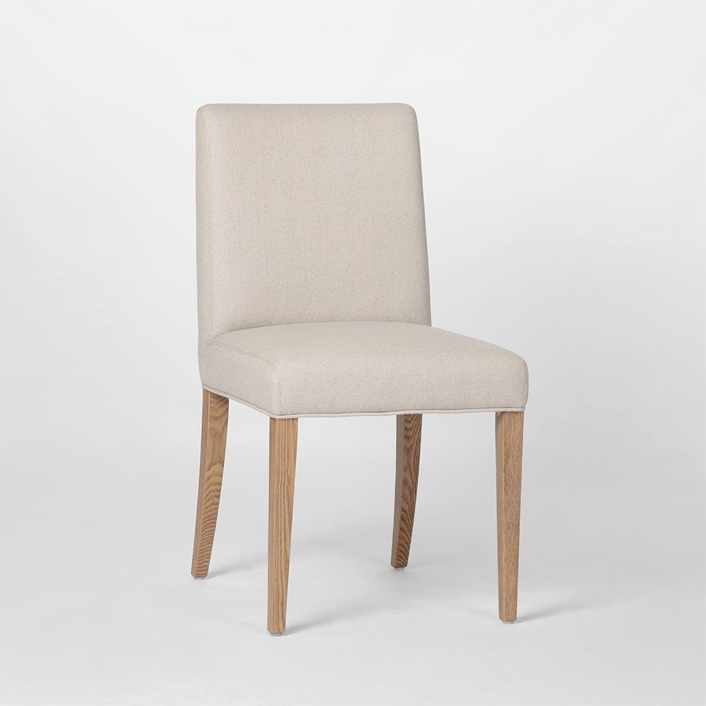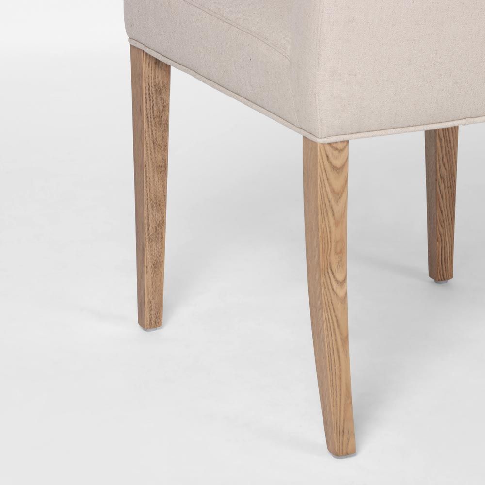 Soft polyester linen fabric & foam seating with a solid ashwood wood leg frame