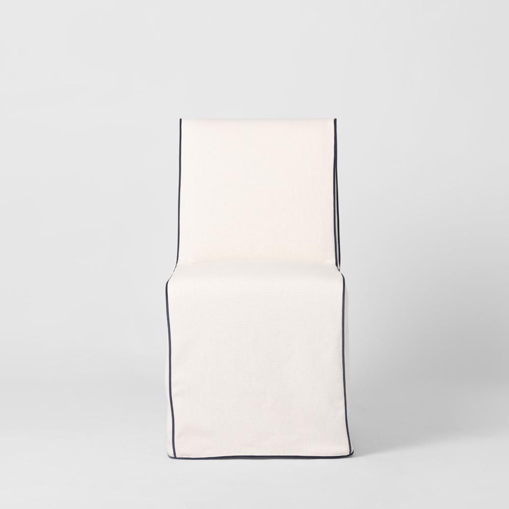 Slip Cover Only - Clifton Dining Chair Ivory W/ Navy Piping