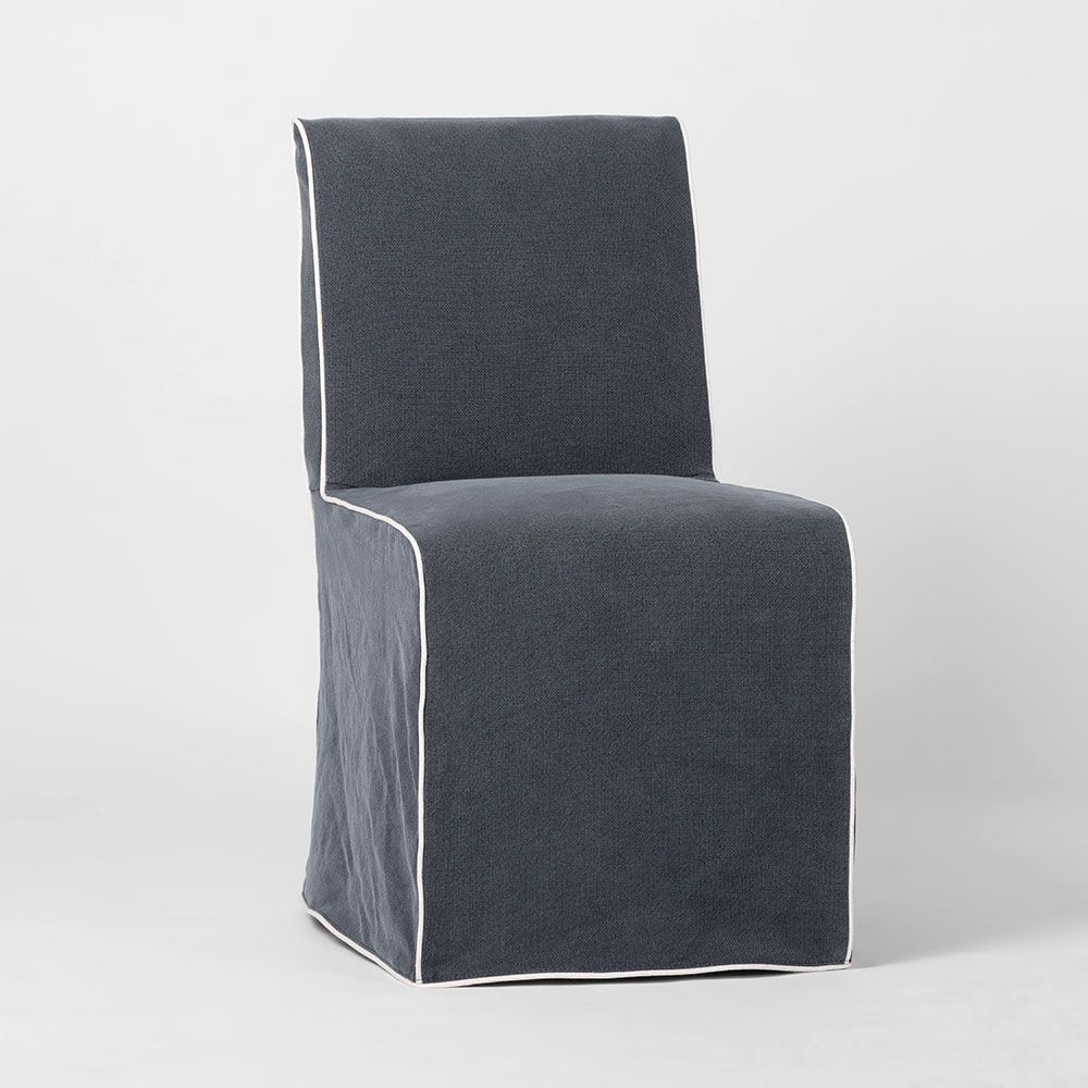Slip Cover Only - Clifton Dining Chair Navy W/ White Piping