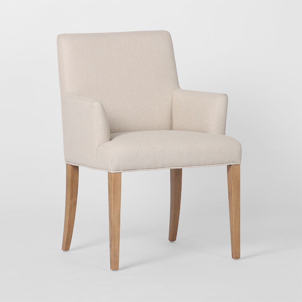 Soft polyester linen fabric & foam seating with a solid ashwood wood leg frame