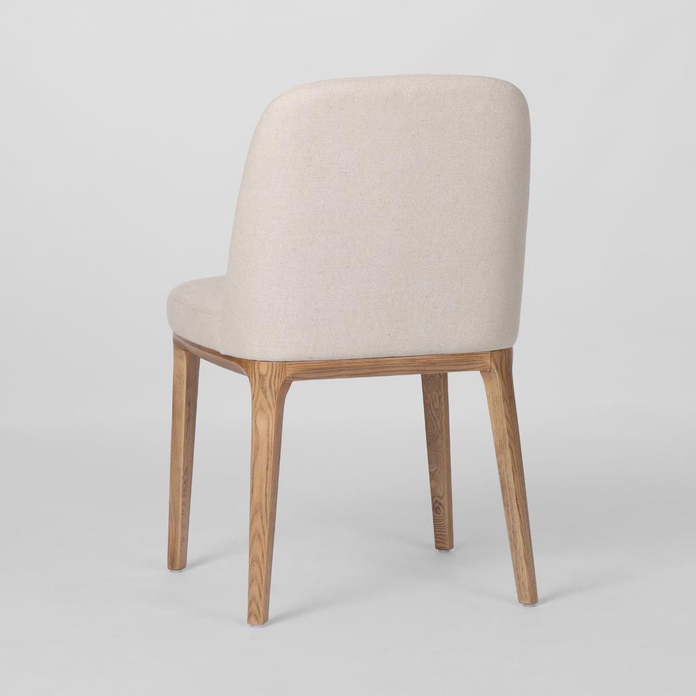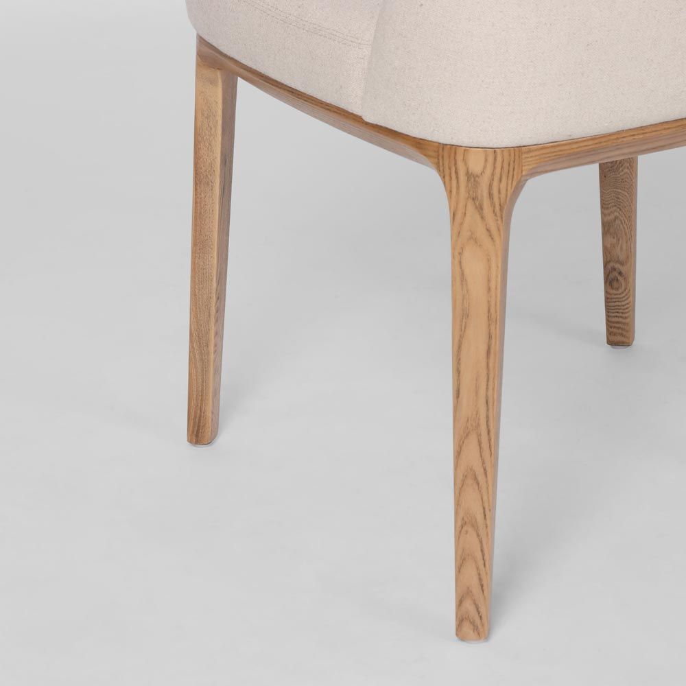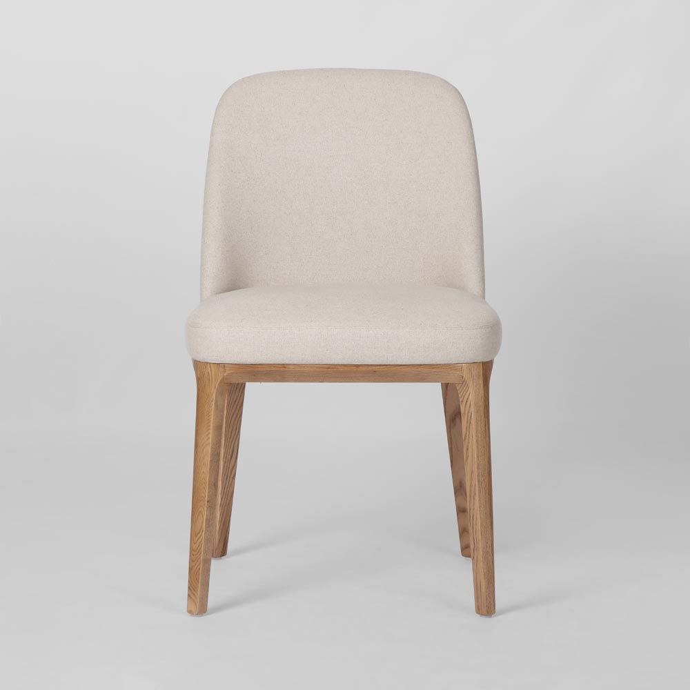 Soft polyester linen fabric & foam seating with a solid ashwood wood leg frame