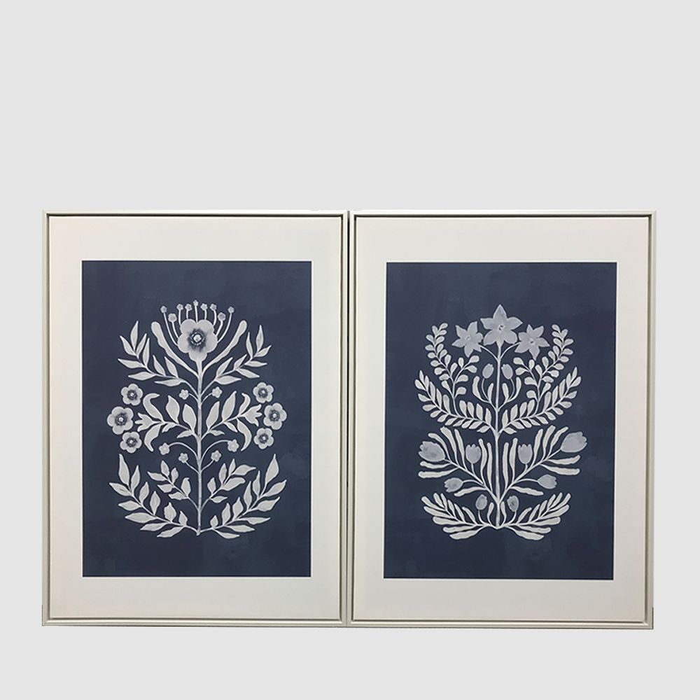 Flowers Blue Motif Framed Wall Art 60x80cm Set 2