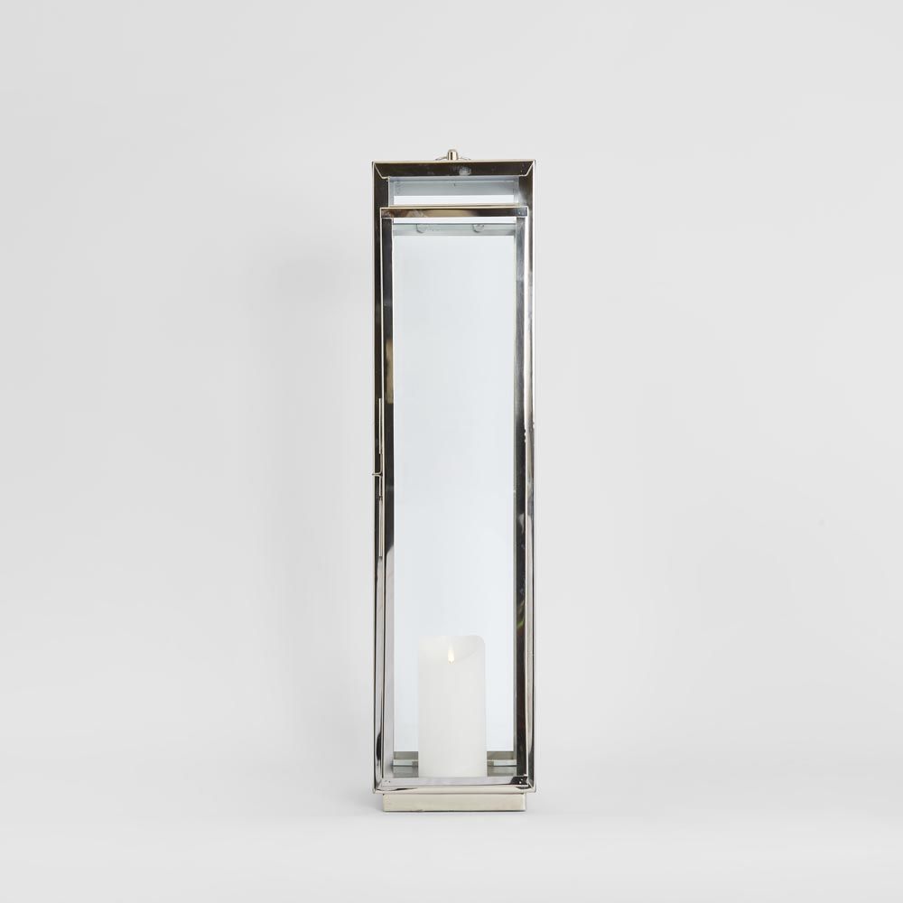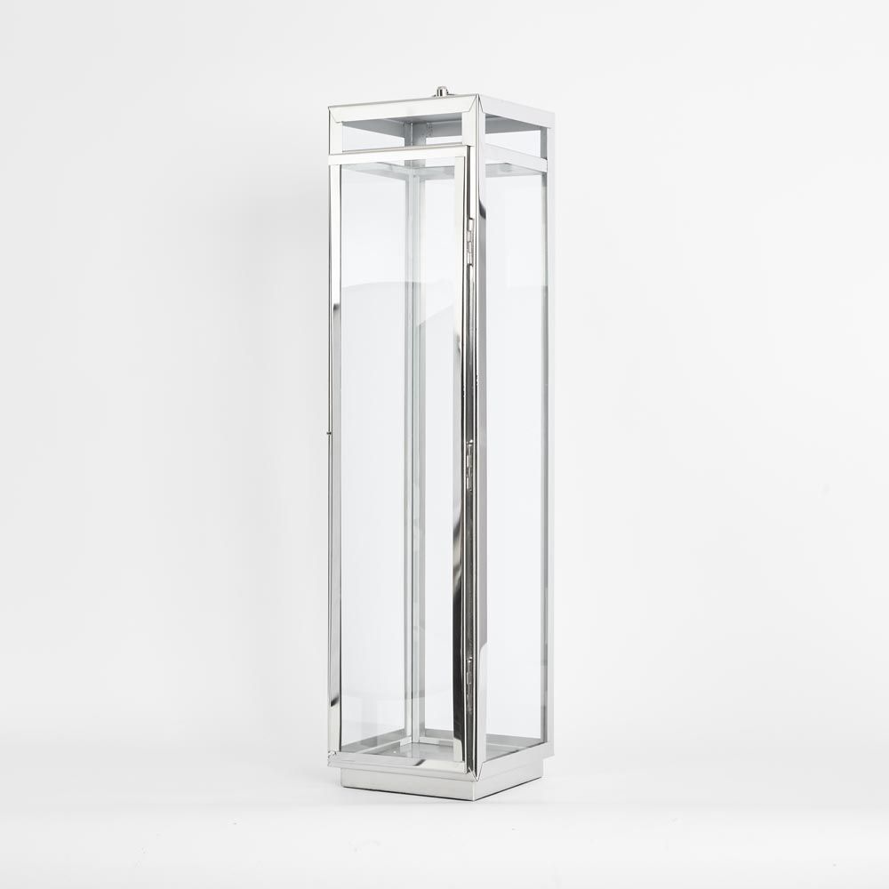 Stainless steel in polished nickel finish, suitable for indoor/outoor use, store indoors during inclement weather, wipe clean with soft, damp cloth