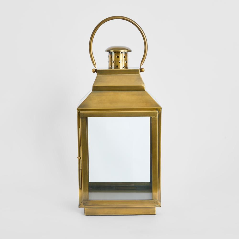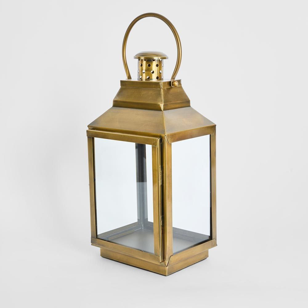 Brass plated Iron & glass, store indoors during inclement weather, wipe clean with soft, damp cloth