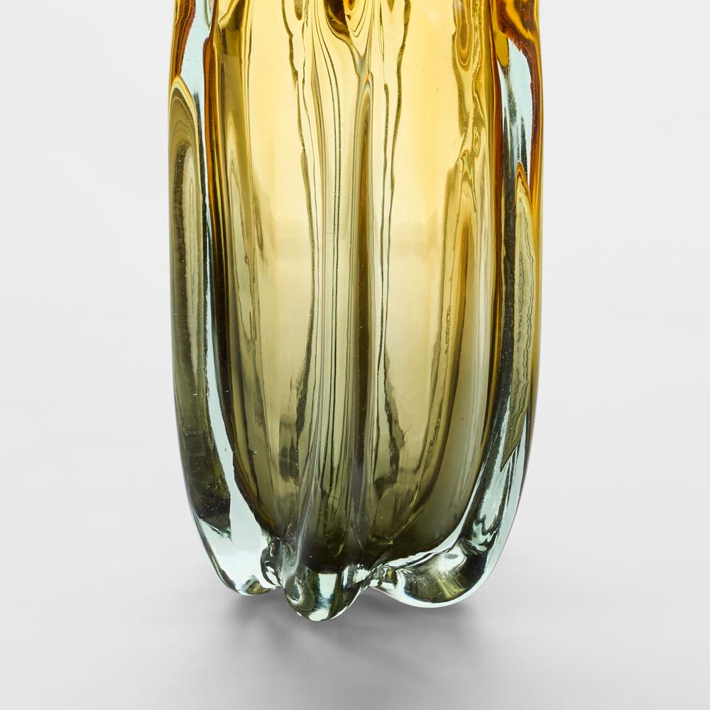Solenne Handblown Glass Vase Amber & Green Ombre Large
