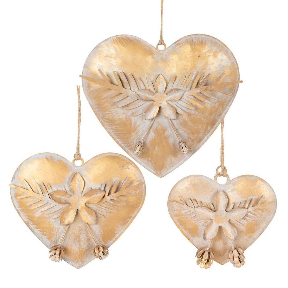 Tiff Gilt Hearts Set of 3 Antique Gold