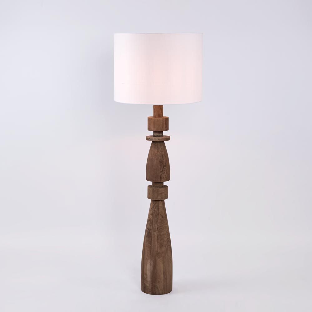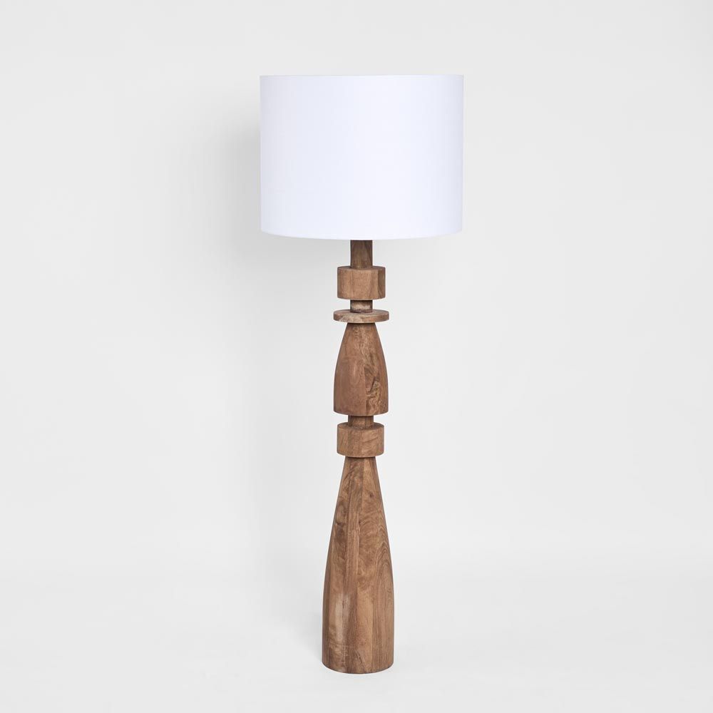 Magnus Wood Floor Lamp Saddle Base with White Shade