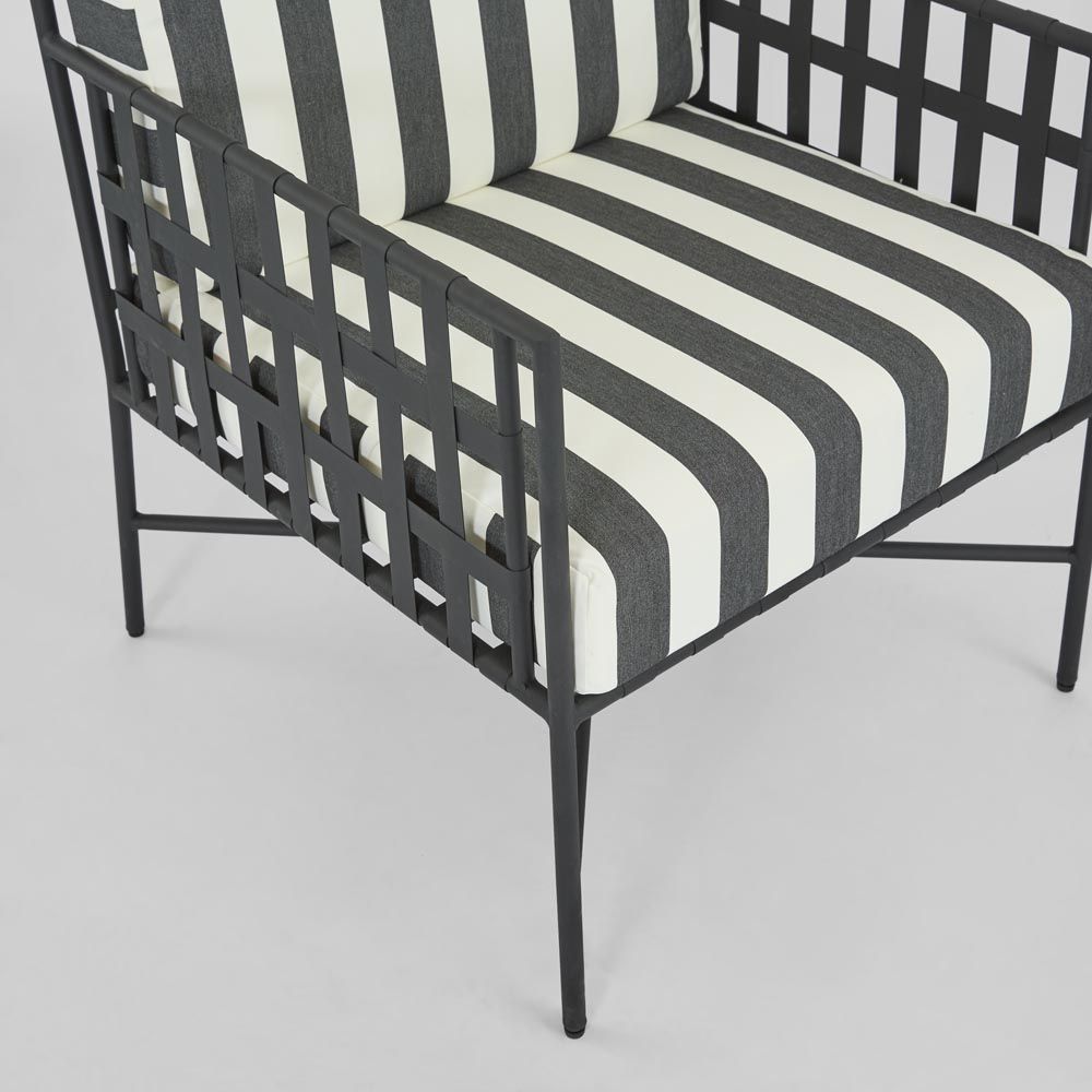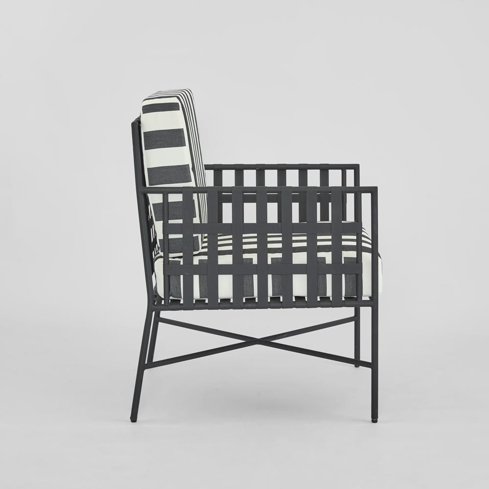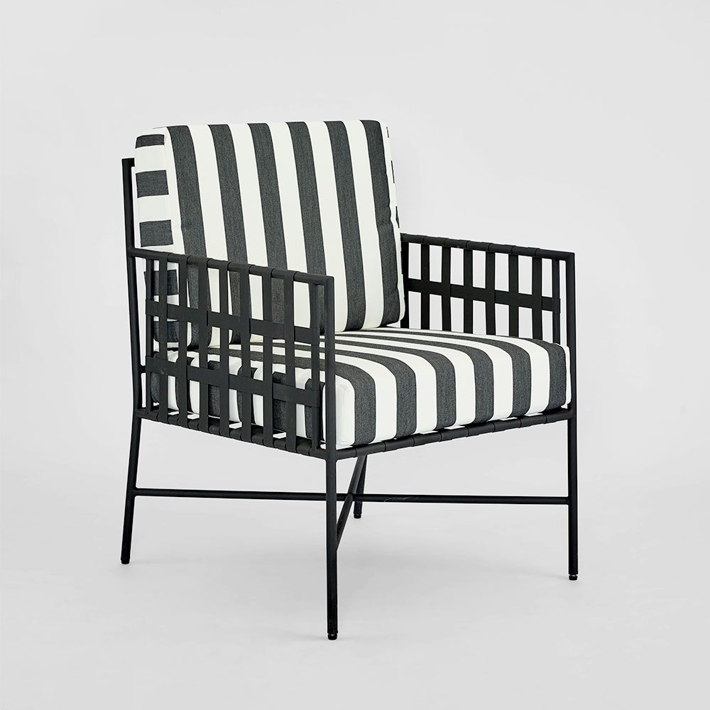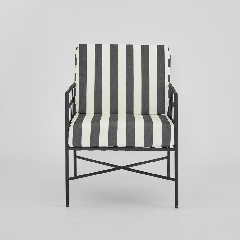 Sheffield Arm Chair Outdoor Iron B/W Stripe Cushions