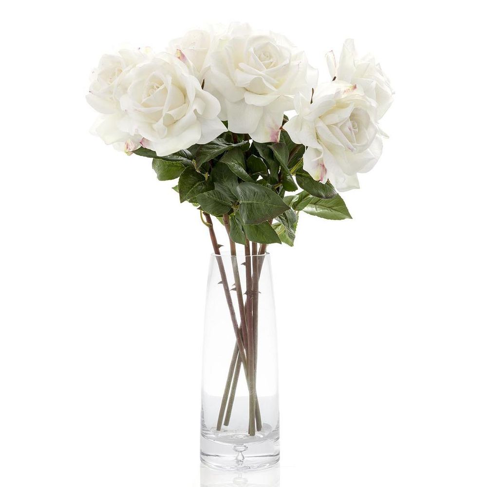 Let every nook and cranny bloom with our artificial White Rose, where sophistication intertwines with wit in every delicate petal. Crafted using true touch and hyperrealistic technology, this single-stemmed marvel showcases petals in a pristine white hue, elegantly framed by glossy, serrated dark green leaves. Hypoallergenic and built to last, these roses offer a worry-free solution to elevate your space sans the hassle of wilting or unwelcome odors. Whether showcased solo in a bud vase or stealing the show as a captivating filler in grander arrangements, this faux white rose stem exudes timeless charm, infusing any setting with an irresistible allure.