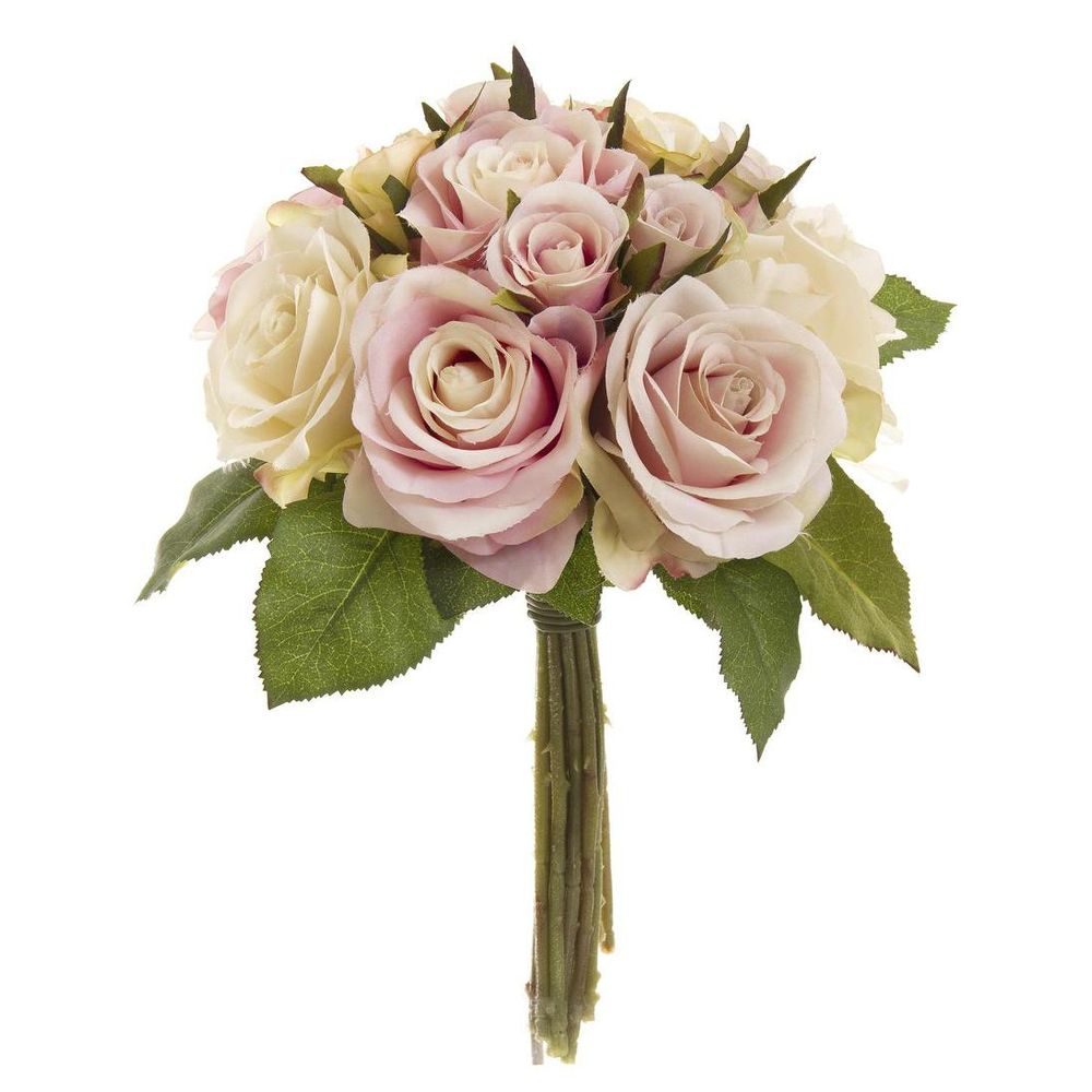 Prepare to bloom with brilliance with our artificial Rose Bouquet. This captivating bouquet features cream-colored blooms with a subtle pinkish hue, perfectly complemented by vibrant green serrated leaves. Whether placed in a vase as a standalone centerpiece or incorporated into larger floral arrangements, it adds a touch of sophistication and natural beauty to any space or event.