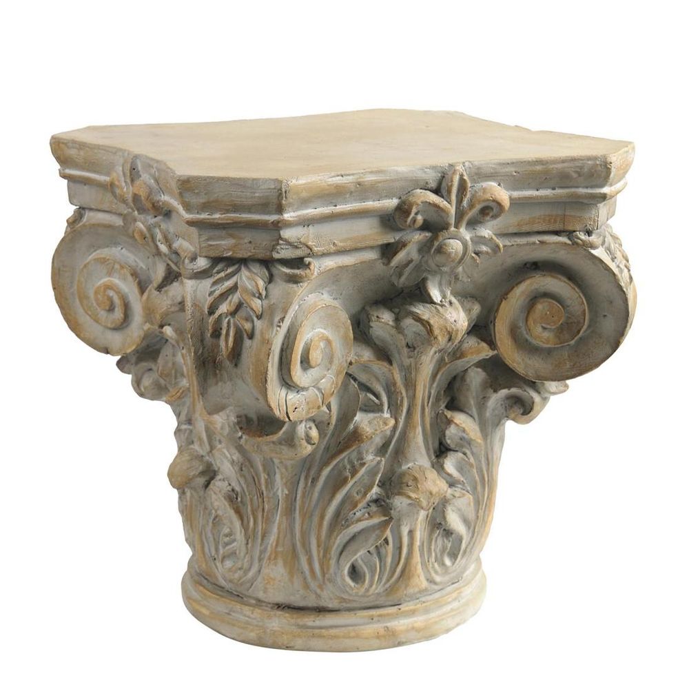 Create an entrance inspired by the Ancient Greek ruins with this superb large decorative pedestal which comes in antique coloured finish. The floral motifs and classical insignia will add a touch of style to an entrance hallway or any corner. Made of durable polyresin, this is a sturdy and durable piece of art or display stand. Wipe gently with cloth to clean when required.
