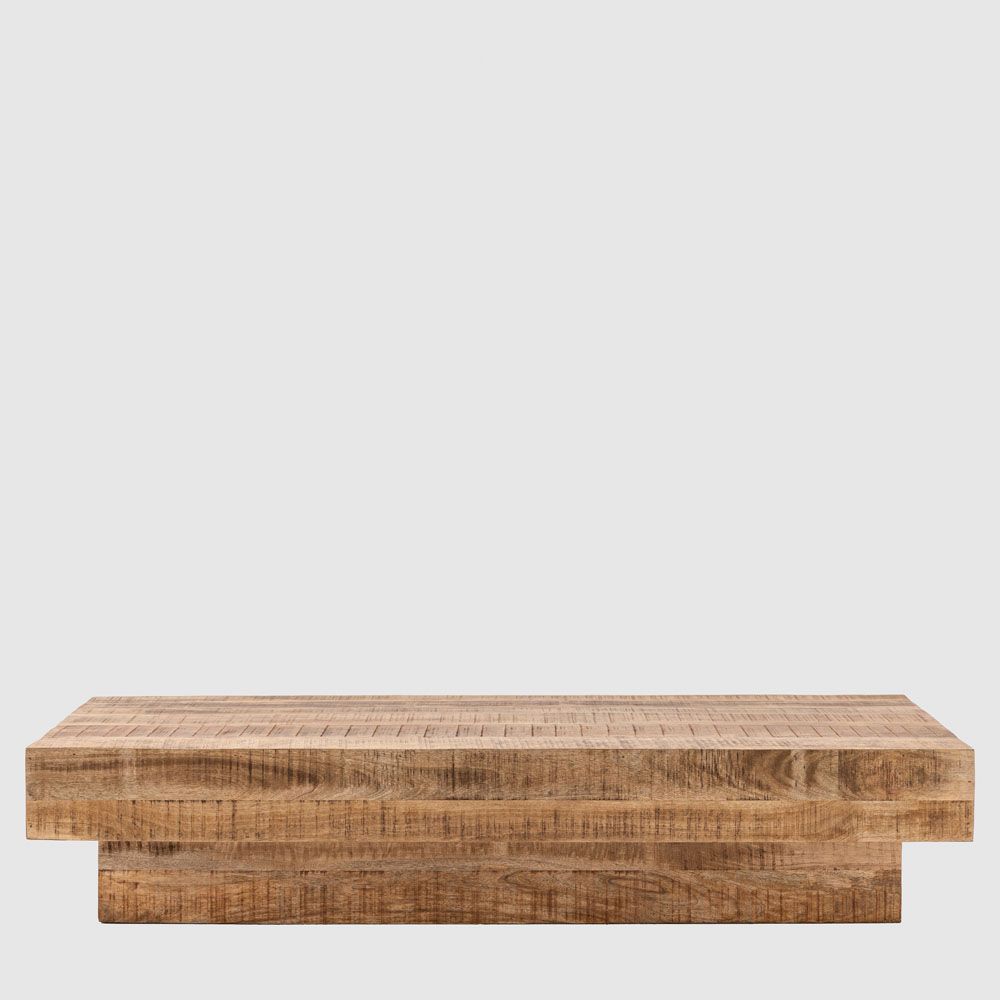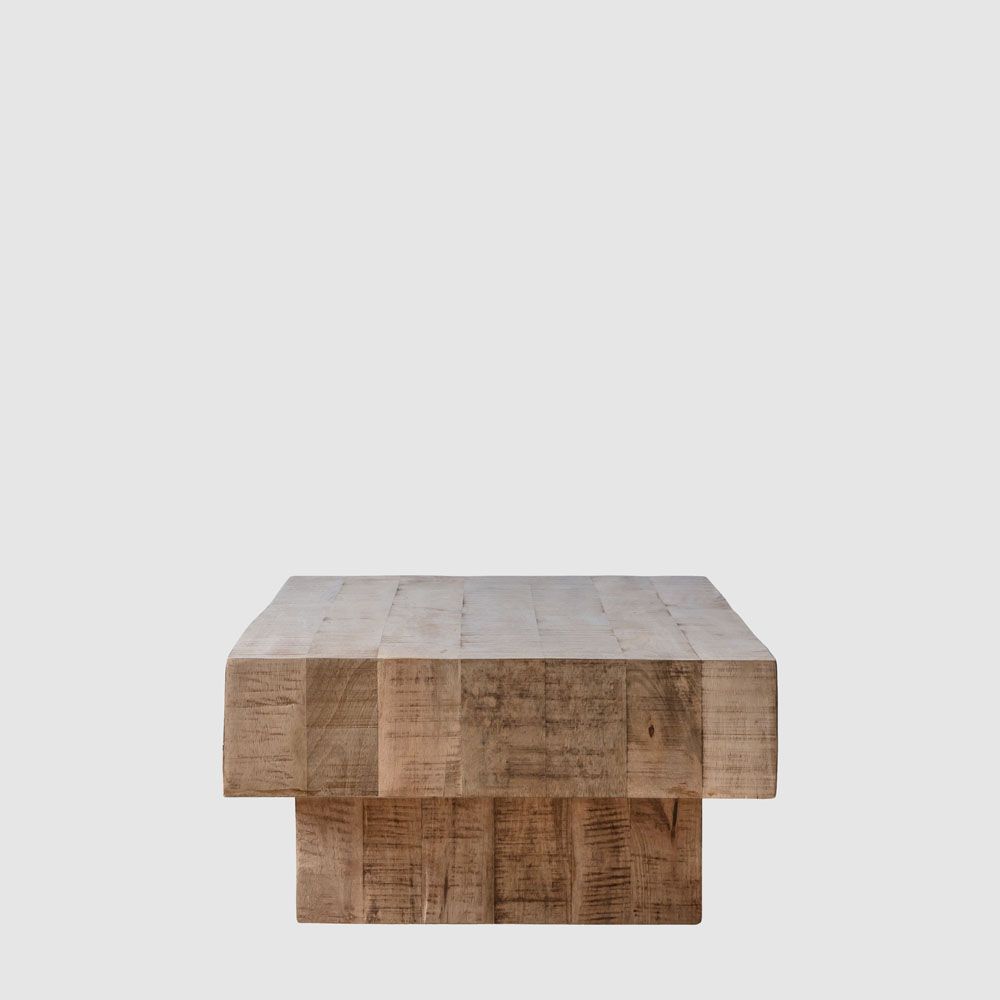 Add a contemporary rustic touch to a room with this coffee table. The piece is cleverly designed to look like solid blocks of cross-sawn timber, the dry weathered finish enhancing the design.