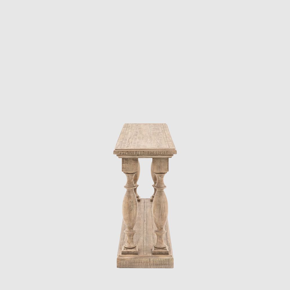 Featuring the clever use of a mill saw which gives characteristic features of cross sawn timber to create a tactile, dramatic finish, this beautiful console table offers a stylish sophisticated yet rustic look. It is crafted from North American pine solids and veneers where practical. Matching pieces are available.