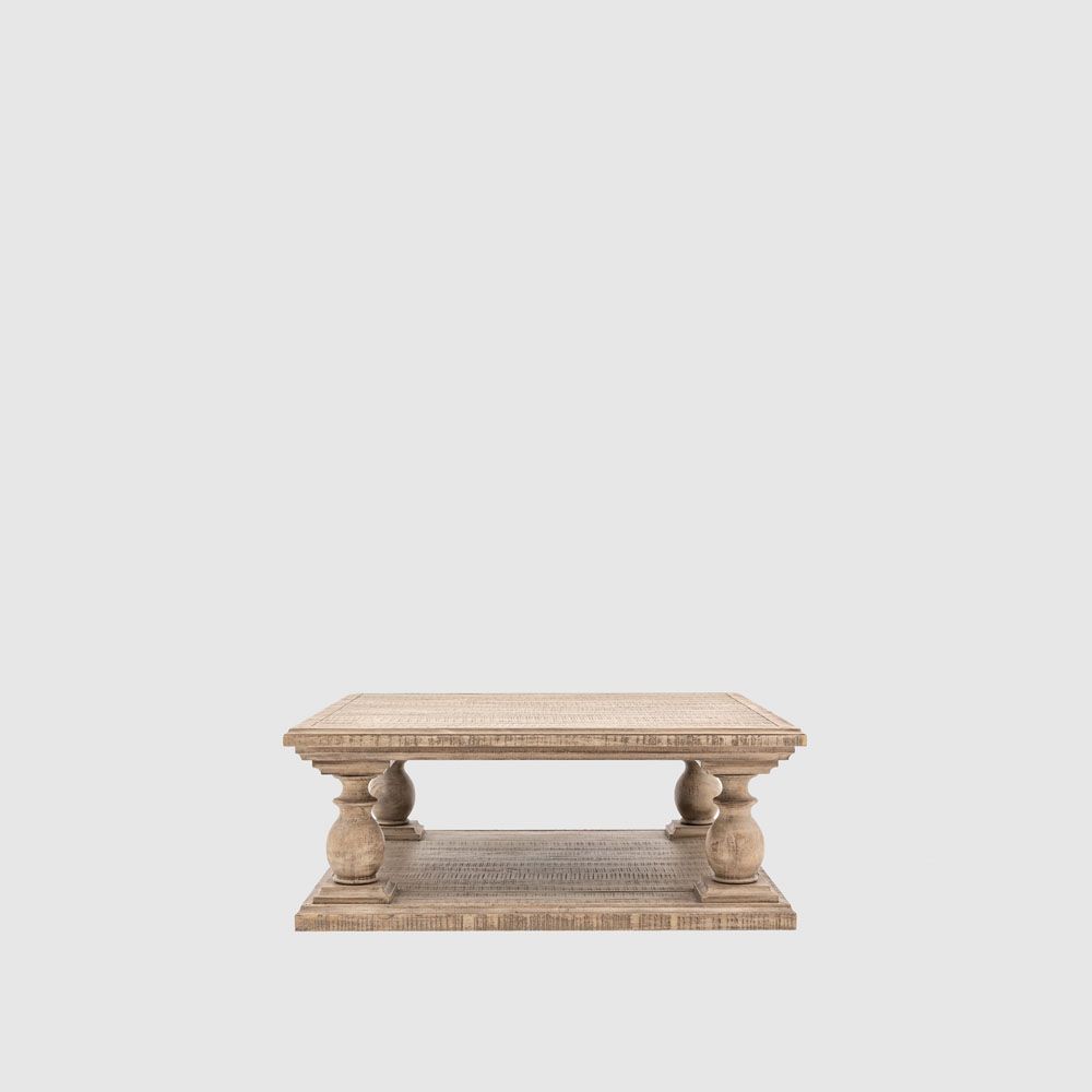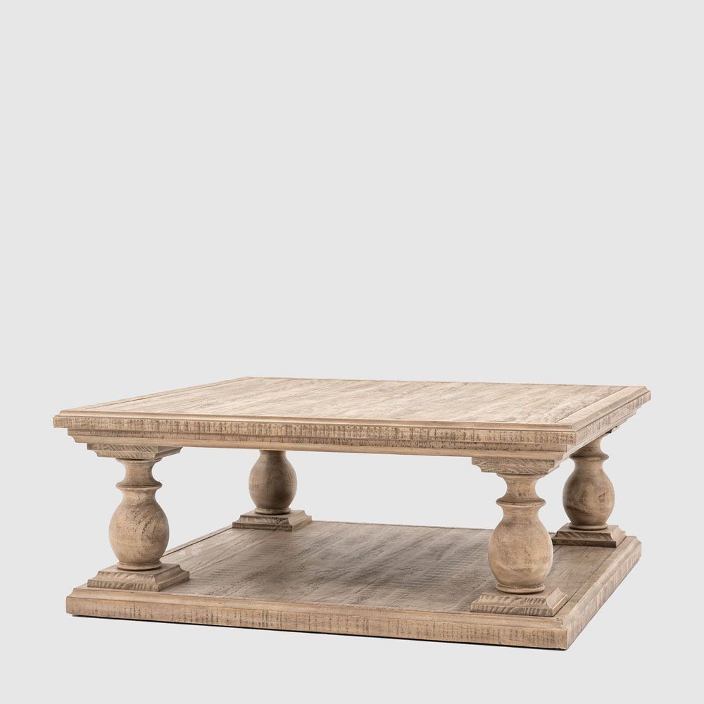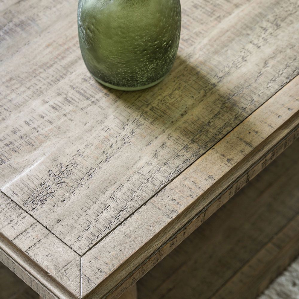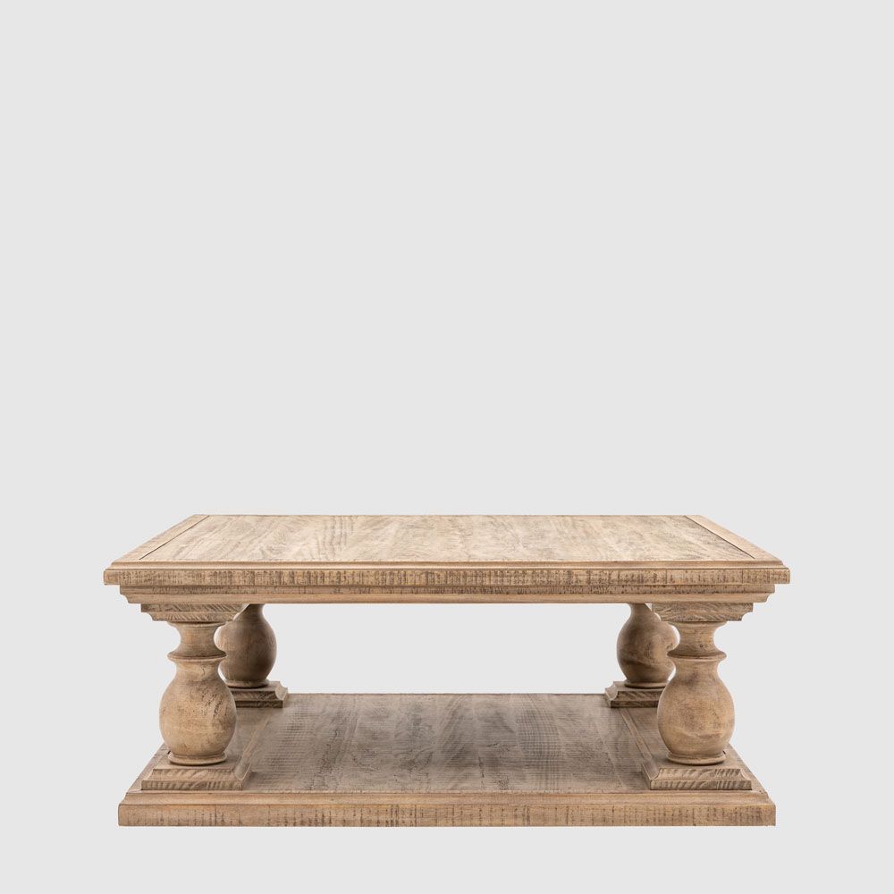 Featuring the clever use of a mill saw which gives characteristic features of cross sawn timber to create a tactile, dramatic finish, this beautiful coffee table offers a sophisticated yet rustic look. It is crafted from North American pine solids and veneers where practical, and features a solid shelf base for added practicality. Matching pieces are available.