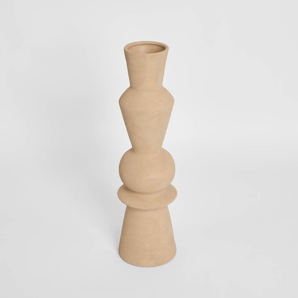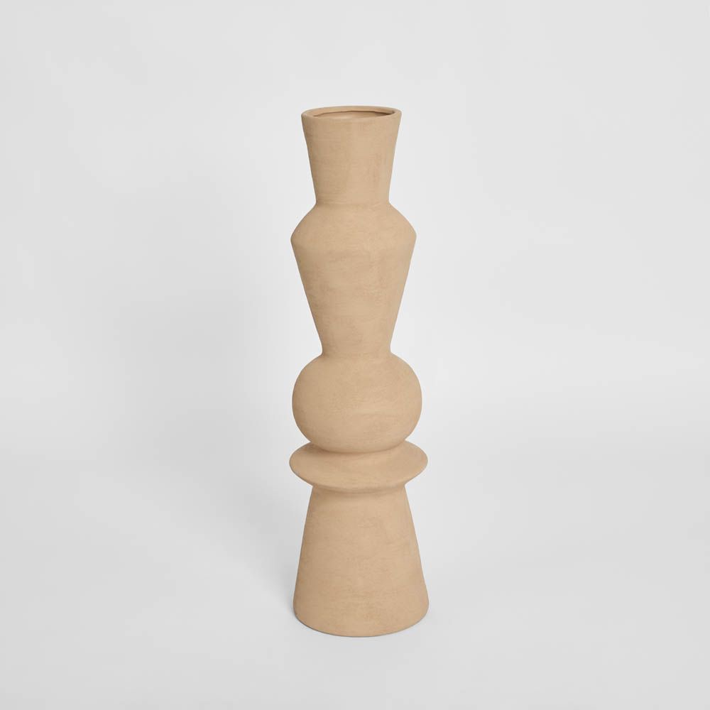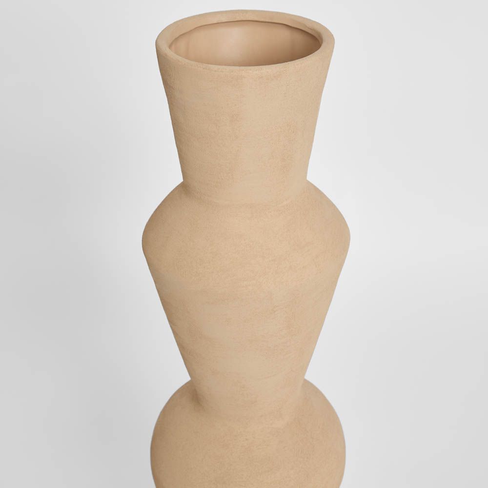 Crafted with a clean, modern silhouette, this tall sculptural vase introduces refined elegance to interiors. The netural finish softens its geometric form, creating a versatile piece that complements both modern and classic styles. Perfect as a standalone accent or styled with long-stemmed botanicals, it adds depth, texture, and balance to consoles, mantels, or entryways.