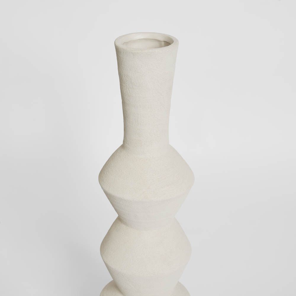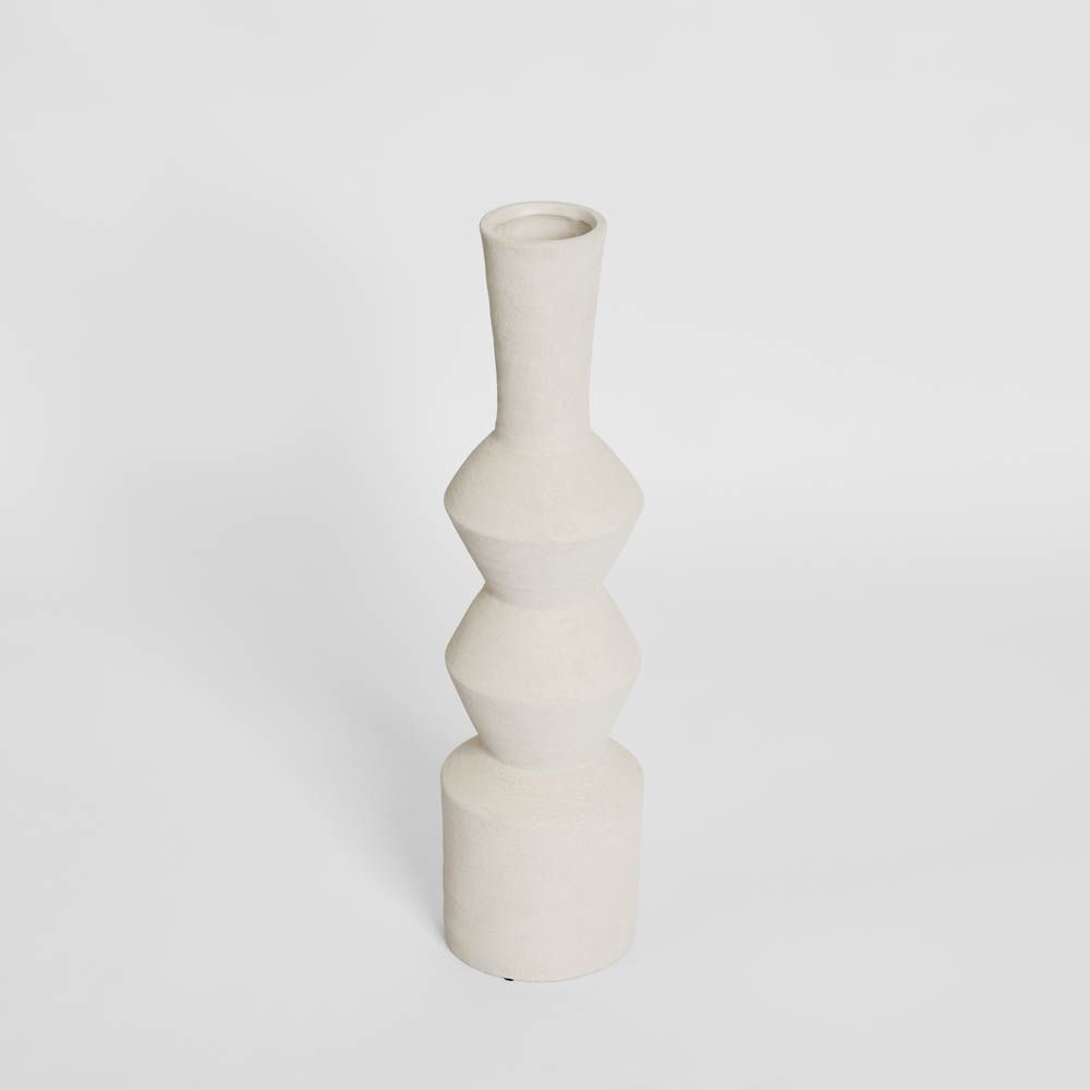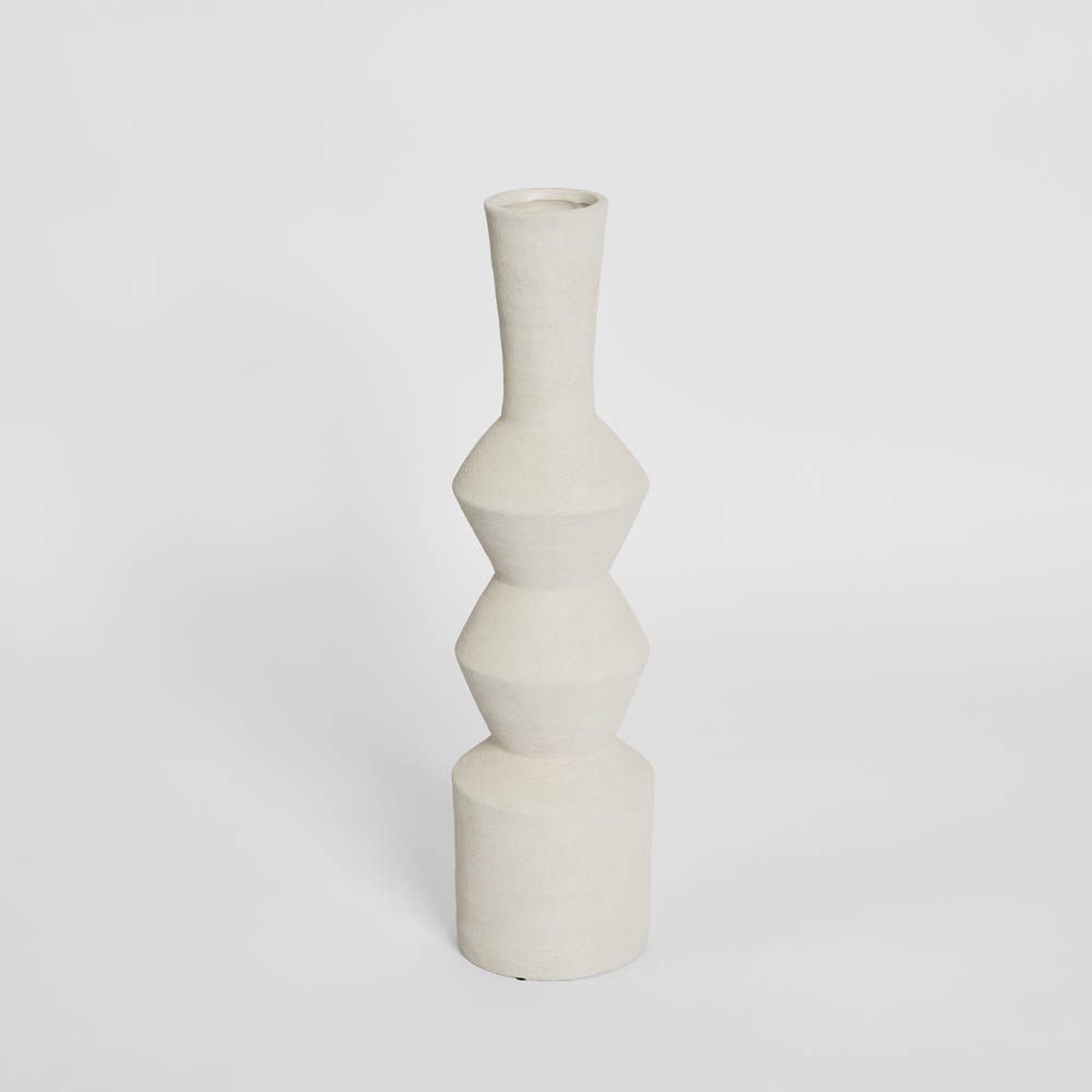 Crafted with a clean, modern silhouette, this tall sculptural vase introduces refined elegance to interiors. The matte white finish softens its geometric form, creating a versatile piece that complements both modern and classic styles. Perfect as a standalone accent or styled with long-stemmed botanicals, it adds depth, texture, and balance to consoles, mantels, or entryways.
