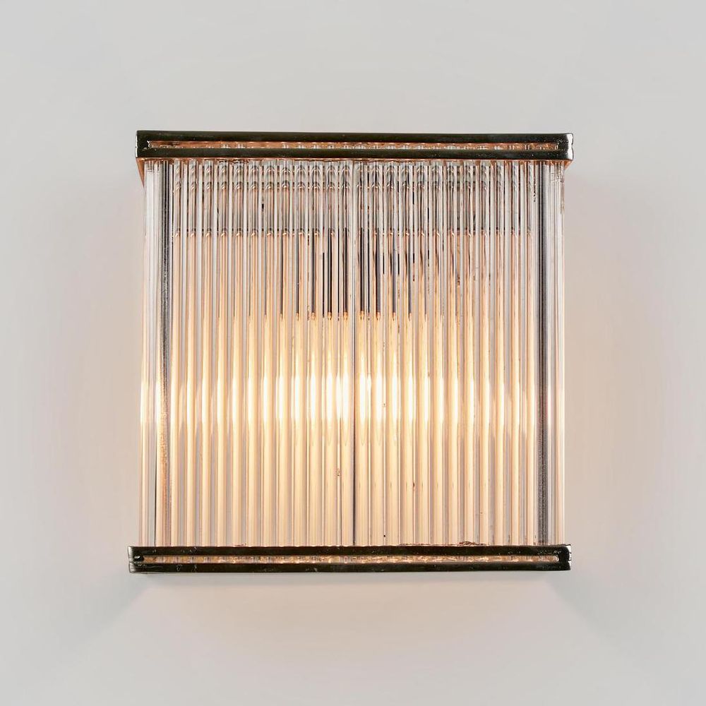 Our Verre wall light is rectangular modern accent sconce that made from clear glass tubes with selection of polished nickel or brass frame metal top and bottom. The glass tubes diffuse light beautifully and produce amazing round reflection on the on the glasses. This wall light will instantly upgrade your foyer, bedroom or living room. ADDITIONAL FEATURES * The lamp holder takes A60 LED filament clear glass 6W E27 * Standard Australian domestic fitting * The sconce can only be installed indoor [ download spec sheet ]