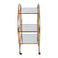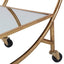 Transport yourself back to the glitz and glamour of the 1920s with our Antique Gold Bar Trolley Mirror Shelves, a chic and sophisticated addition to any home bar or entertaining area. Featuring exquisite mirrored shelves and an elegant circular design, this trolley effortlessly combines vintage aesthetics with modern practicality, making it the perfect choice for serving drinks in style at your next gathering.