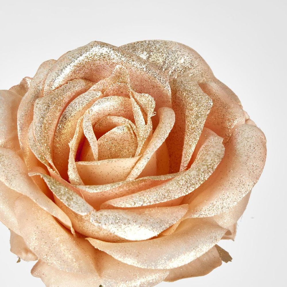 Champagne with Champagne Gold Glitter Christmas Venus Rose with 2 sets of Leaves - Pack of 12