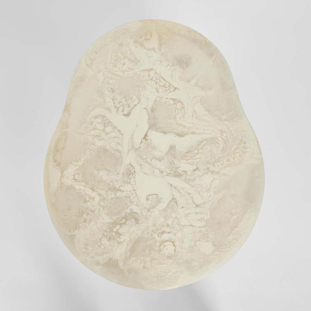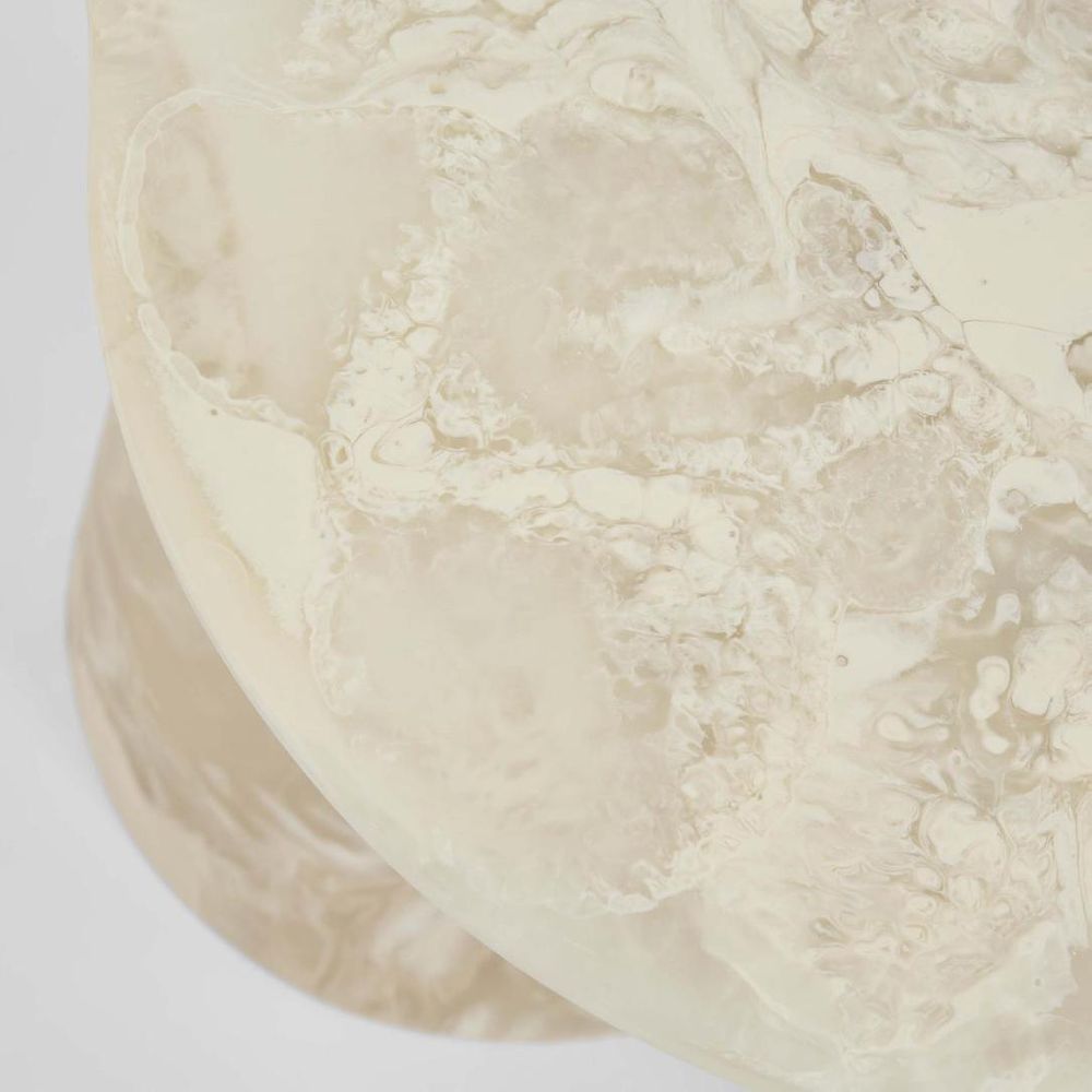 Crafted from hand-poured resin, this side table captures the beauty of organic form and fluid texture. Its soft curves and luminous finish bring a sense of calm and balance to any space. Each piece is individually made, showcasing natural variations that highlight the artistry of its creation. These unique textures are a reflection of its handcrafted nature - intentional details that make every table one of a kind.