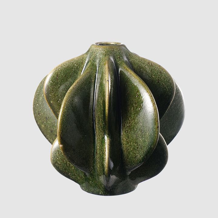 A captivating ceramic sculpture inspired by nature’s organic geometry. Deep green rounded forms bloom from its core, each hand-shaped and glazed to reveal a rich, tactile surface