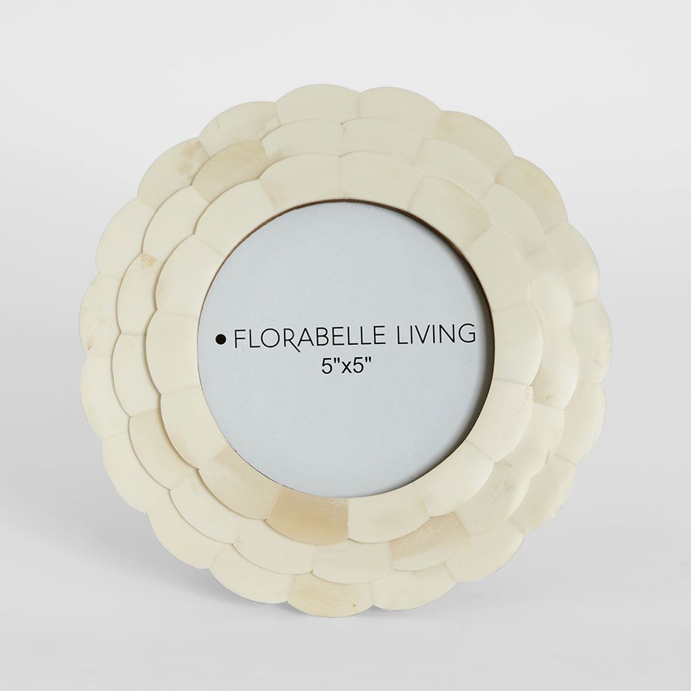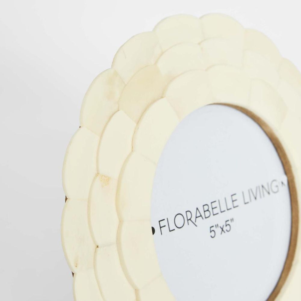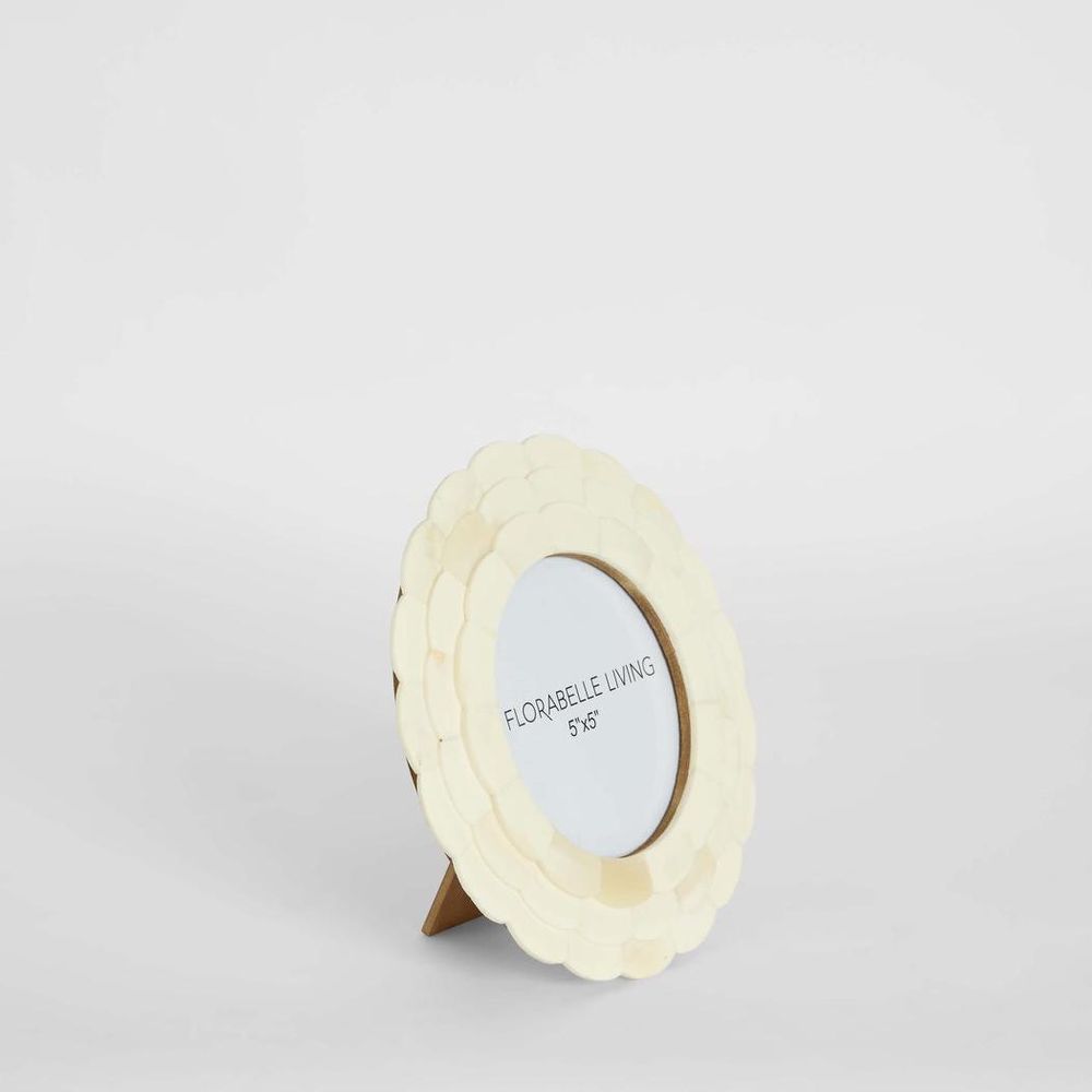 Leila Round Bone Inlay White Photo Frame