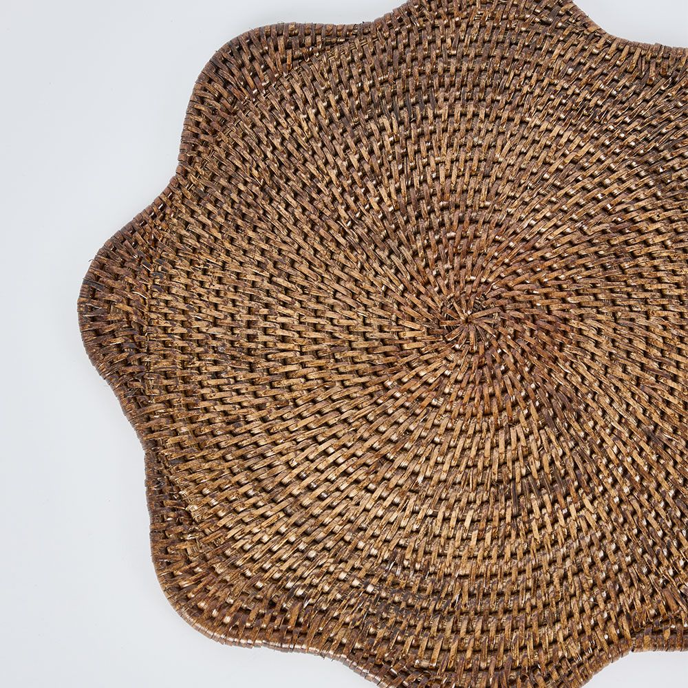 Paume Scallop Rattan Placemat Antique Brown