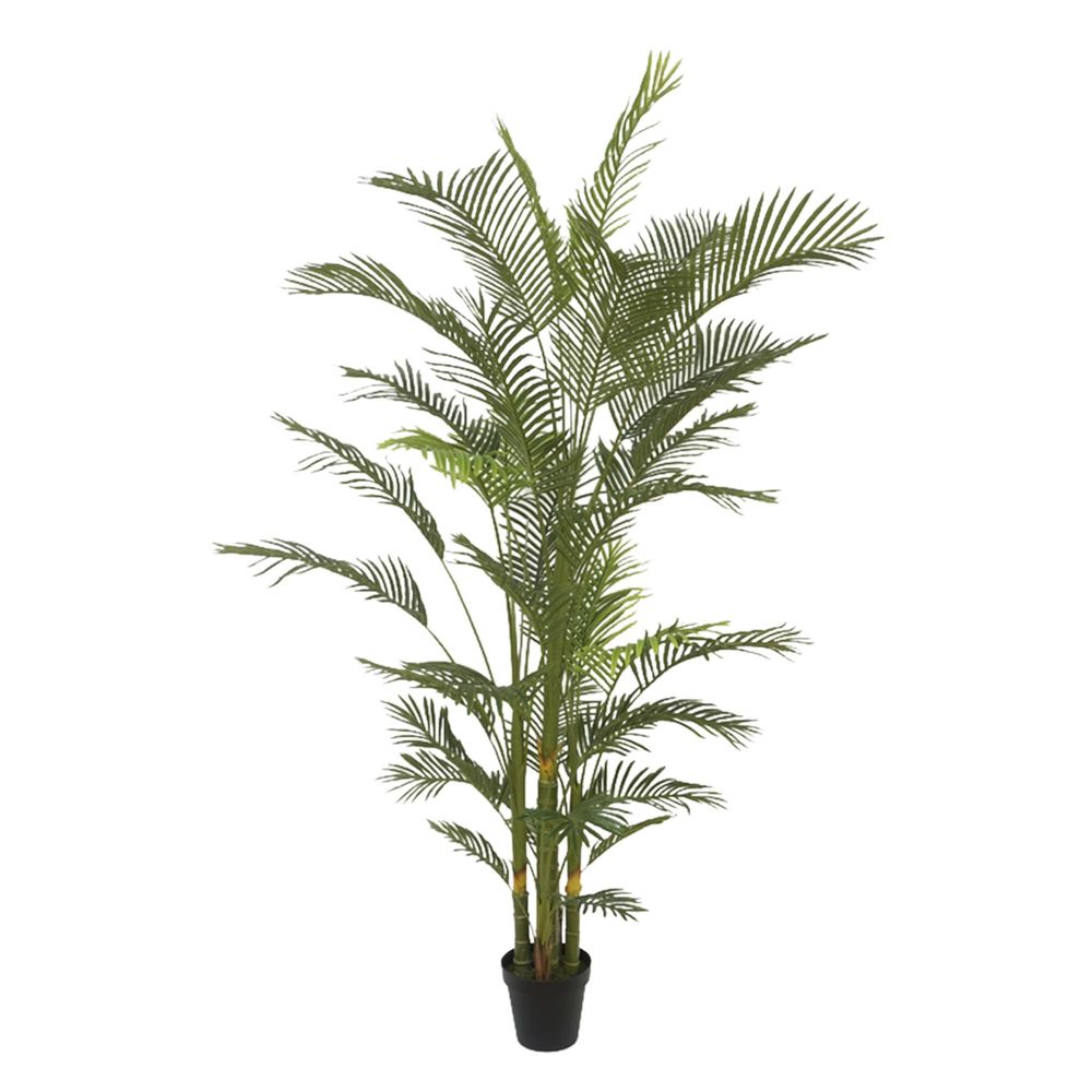 Transport yourself to sunnier shores with every glance at our artificial Palm Tree in a sleek black pot, designed with a real touch that captivates the senses. Whether adorning a spacious living room, commercial space, or vibrant office lobby, this artificial palm tree offers a biophilic effect that enhances mood and motivation, transporting you to a tropical paradise. With its low-maintenance nature and hypoallergenic properties, you can enjoy the benefits of indoor greenery without any worries. No assembly is required, and maintenance is a breeze, simply dust with a static feather duster to keep it looking fresh and vibrant.