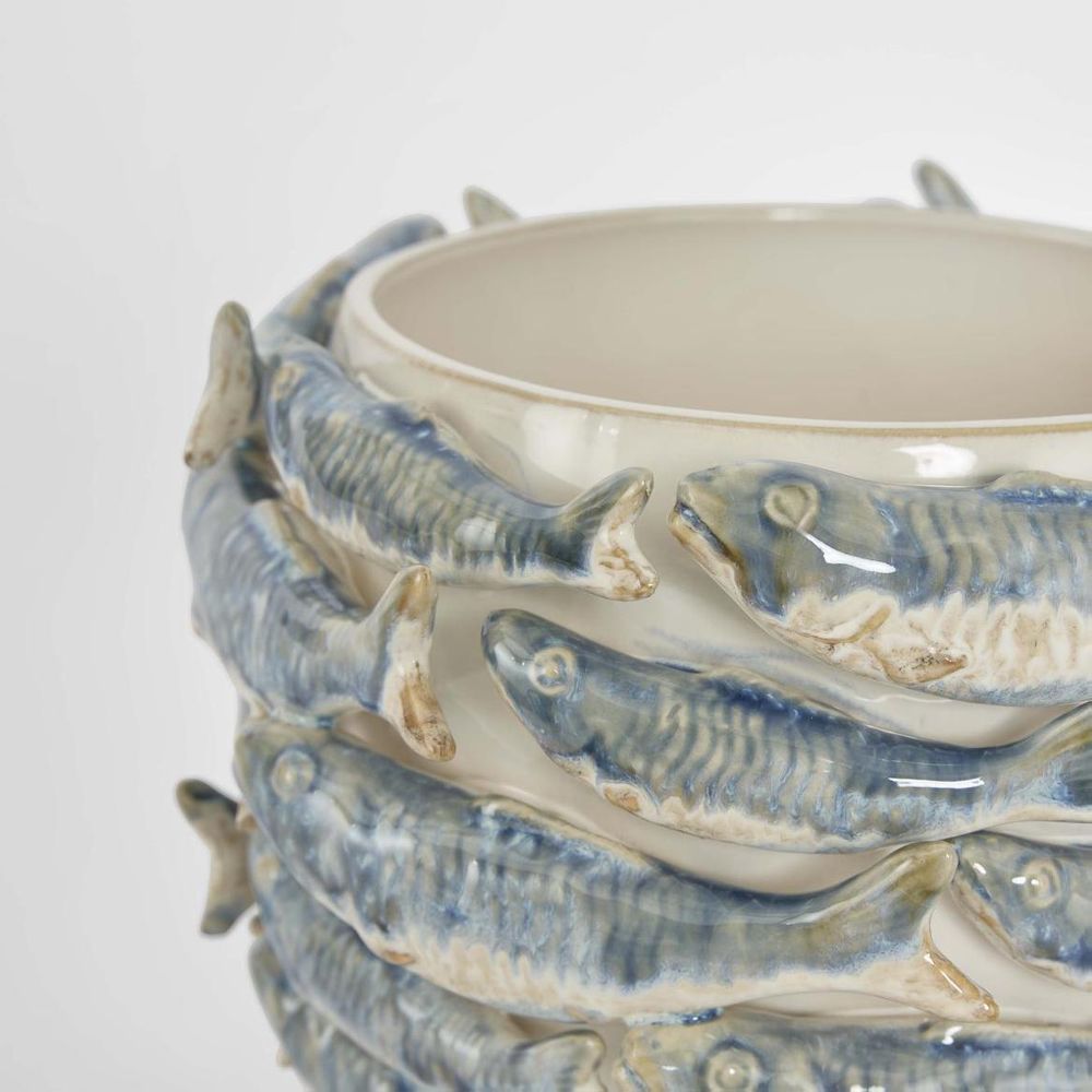 A striking ceramic piece with sculpted fish, each rendered with intricate detail and dynamic form. Crafted with precision, it’s a unique statement that brings vitality and charm to any setting.