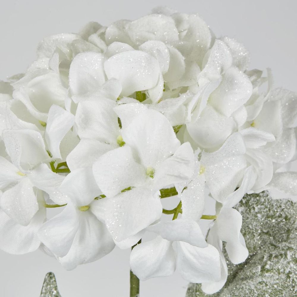Snow Covered White Christmas Hydrangea with 2 Leaves - Pack of 12