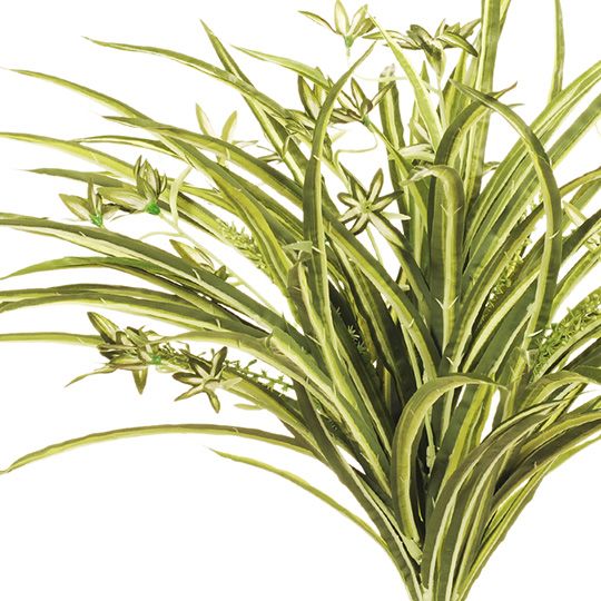 Brighten up your interior space with this striking faux spider plant bush, unbelievably realistic with their fine details and colours you wouldnât even think theyâre faux! Style this artificial spider plant bush with other bushes and greenery from the immense range of artificial greenery to create an indoor oasis. With minimal maintenance this faux spider plant bush can offer lasting beauty, be sure to keep out of direct sunlight.