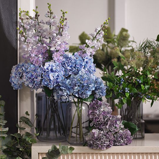 Bring warmth and vibrancy to your interior space with this gorgeous faux hydrangea. Easily maintained this gorgeous hydrangea flower stem will bring lasting beauty into your home or office space. Create a one of a kind arrangement mixing with other stems or place in a decorative vase on its own. For longer lasting artificial flower stems keep out of direct sunlight.