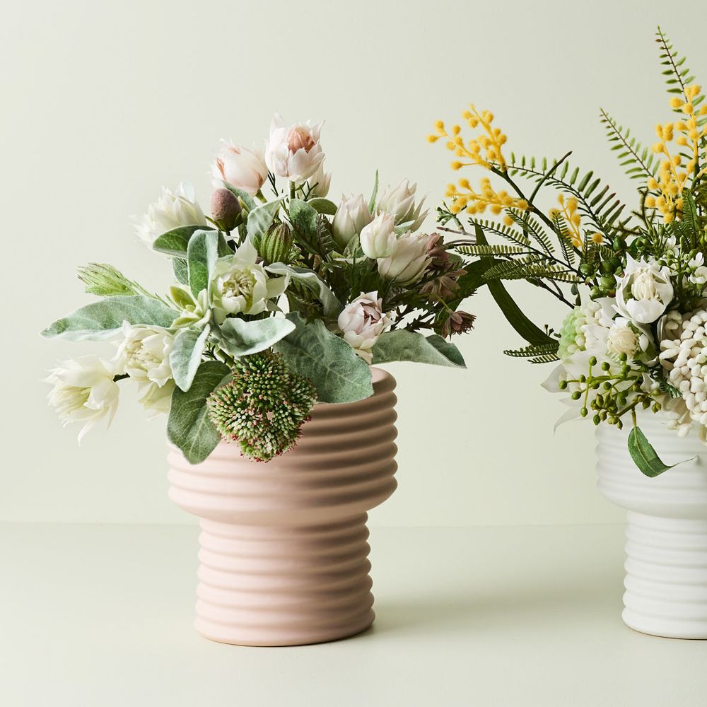This artificial blushing bride mix bouquet is perfect for weddings and can easily be styled in a vase on its own or mixed with other faux stems from our extensive range of natives. The fine details and colours are amazing, so true to life that it is difficult to note the difference. You can enjoy long lasting beauty with these fake bouquets with minimal maintenance be sure to keep out of direct sunlight. Image displayed is a section of the product only.