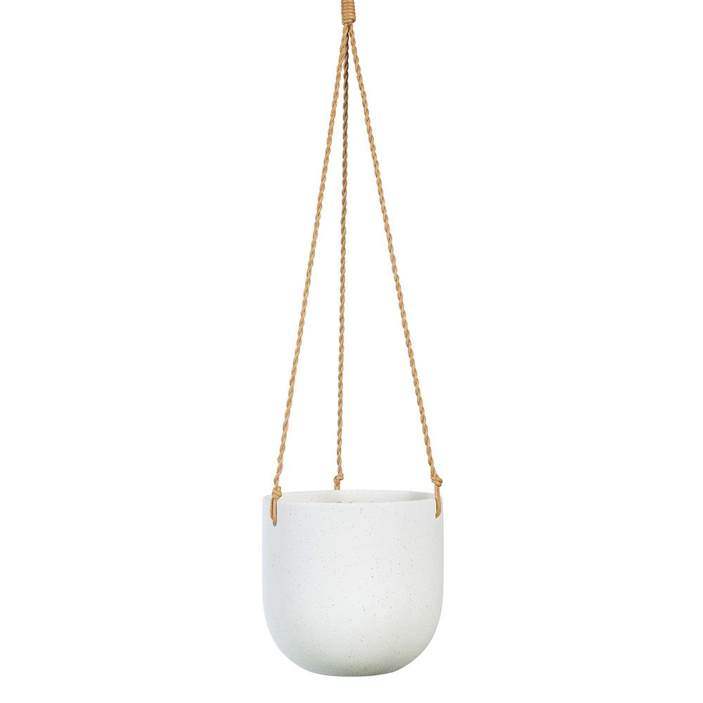 Our ceramic Flo hanging pot featuring a textured organic finish and leather strap is the perfect vessel to style your plants in any space. Select from our extensive range of artificial greenery and plants to compliment. This ceramic pot is handmade, due to the nature of handmade items there may be slight variations in the size, surface texture, glaze consistency, colour or tone of the pots. This pot is suitable for indoor use and does not have a drainage hole.