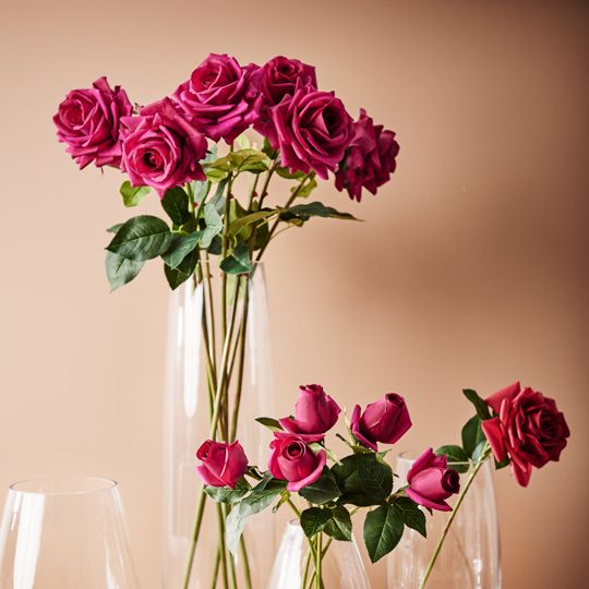 Bring colour into your space with Australia's most realistic artificial flowers. Easily maintained this gorgeous artificial Rose Hannah flower stem will bring lasting beauty into your home. Create a one of a kind arrangement mixing with other stems or place in a decorative vase on its own. Made from the finest of materials this faux Rose Hannah in Burgundy looks amazingly real. For longer lasting faux flower stems, keep out of direct sunlight. This artificial Rose Hannah is in our âFresh Touchâ range which means the flower petals and heads have a realistic soft "feel", almost natural.