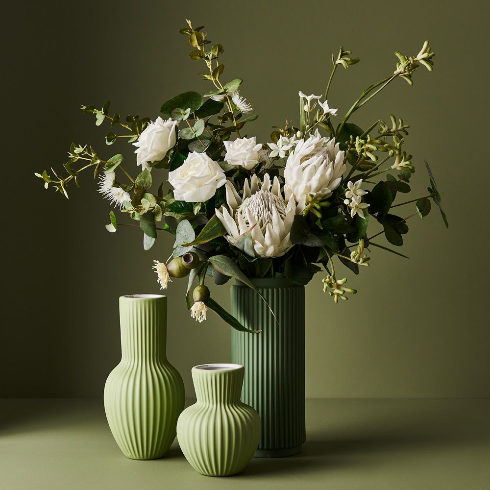 The artificial natives and in particular this Protea King in the floral interiors range are amazingly life-like. The fine details and colours are amazing, so true to life that it is difficult to note the difference. The faux Protea King in White can easily be styled in a vase on its own or mixed with other artificial stems from our extensive range of natives. You can enjoy long lasting beauty with these faux stems with minimal maintenance be sure to keep out of direct sunlight.