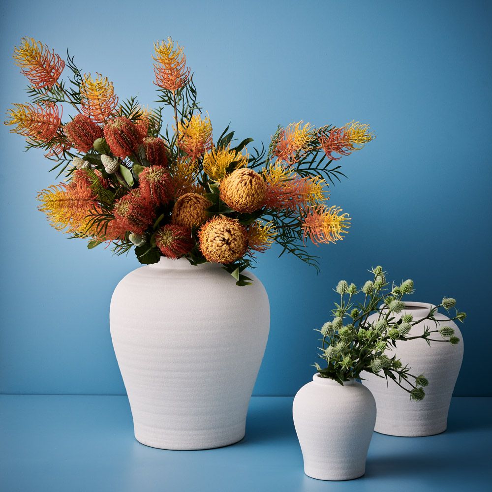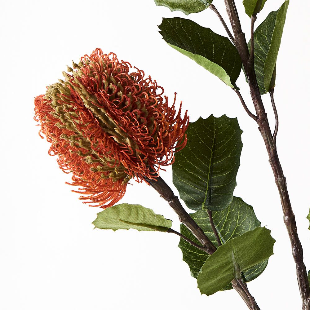 The artificial natives in the floral interiors range are amazingly life-like. The fine details and colours of this banksia spray are amazing, so true to life that it is difficult to note the difference. The faux banksia spray in orange can easily be styled in a vase on its own or mixed with other artificial stems from our extensive range of natives. You can enjoy long lasting beauty with these faux stems with minimal maintenance be sure to keep out of direct sunlight.