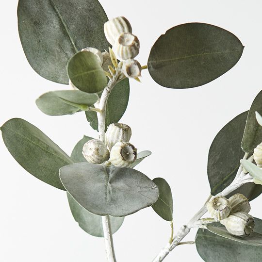 Bring the garden indoors with this stunning artificial eucalyptus tetragona spray in grey green. Style this eucalyptus tetragona simply in a beautiful bunch on their own or create an arrangement from Floral Interiors huge variety of artificial natives for impact. With minimal maintenance this artificial eucalyptus can offer lasting beauty, keep out of direct sunlight.