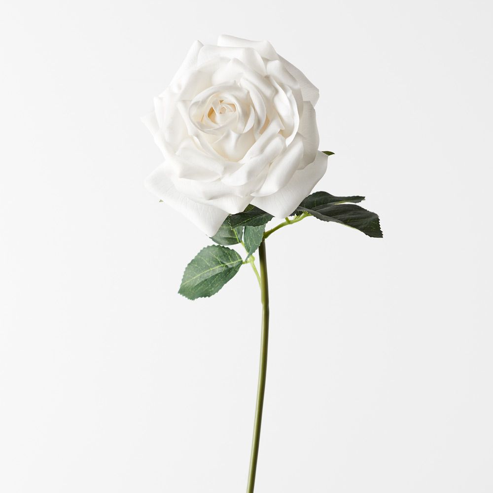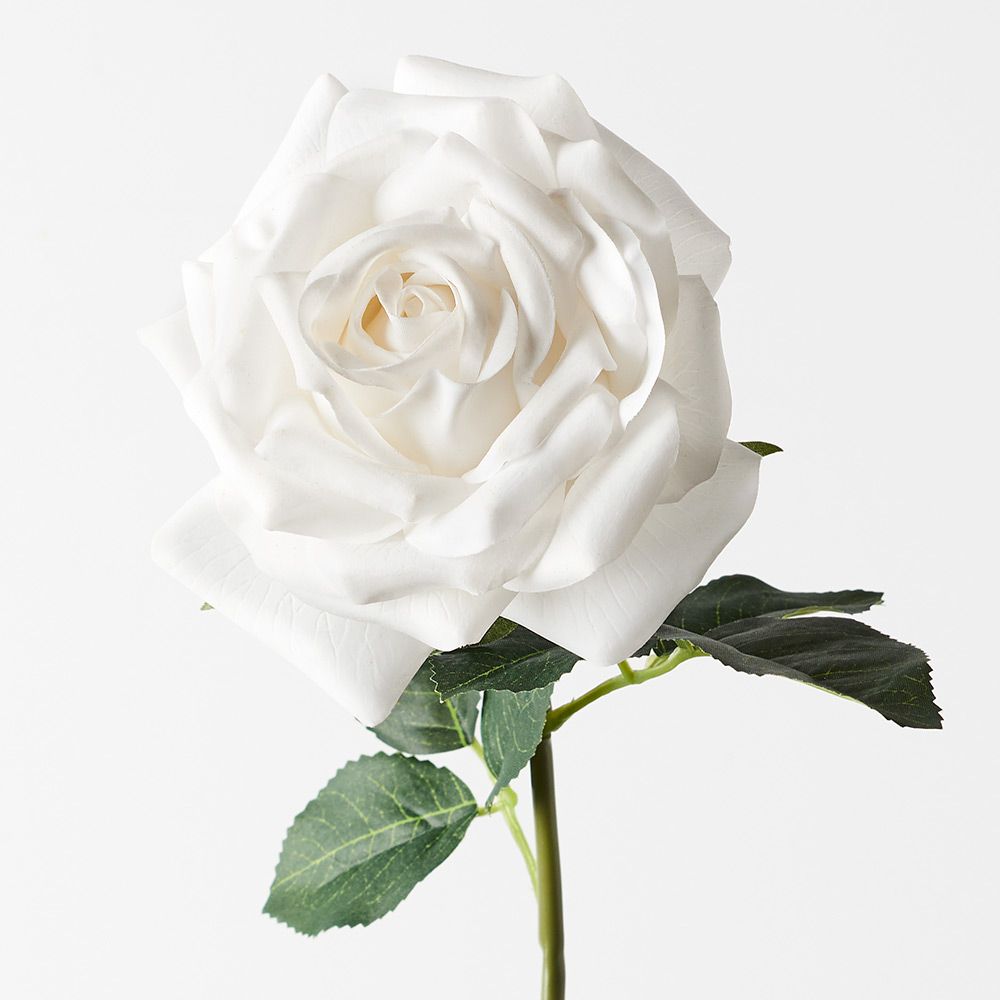 Bring the garden indoors with this striking artificial Rose Bella, unbelievably realistic it will feel like you have just been to the market and picked a fresh bunch. Style this Rose Bella simply in a beautiful bunch on their own or create an arrangement from Floral Interiors huge variety of artificial flowers for impact. Being artificial, this flower stem will offer lasting beauty with minimal maintenance, keep out of direct sunlight. This artificial Rose Bella in Winter White is in our ‘Fresh Touch’ range which means the flower petals and heads have a realistic soft "feel", almost natural.