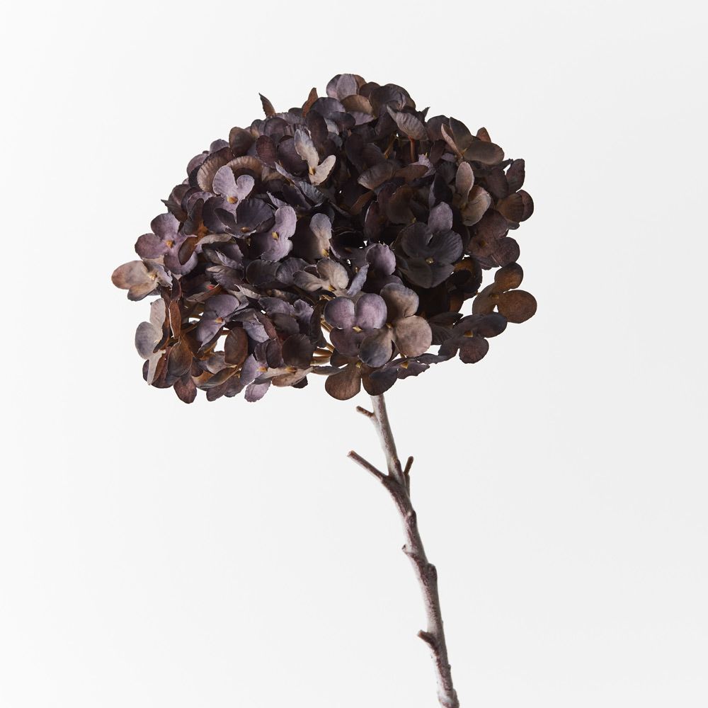 Easily maintained this gorgeous hydrangea flower stem in licorice will bring lasting beauty into your home. Create a one of a kind artificial arrangement mixing with other faux stems or place in a decorative vase on its own. Being artificial, this flower stem will offer lasting beauty with minimal maintenance, keep out of direct sunlight.