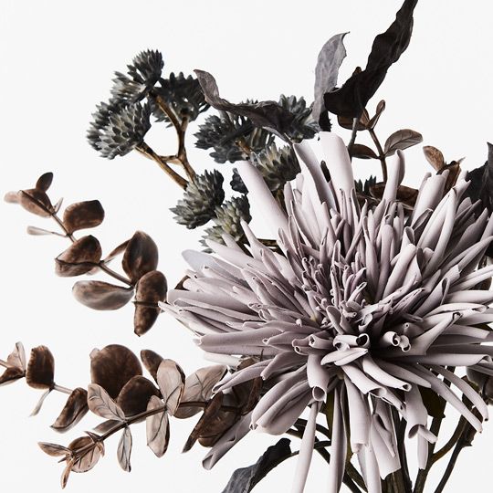 The faux dahlia mixed bouquet in grey with its fine details, is perfect for weddings and can easily be styled in a vase on its own. You can enjoy long lasting beauty with these faux bouquets with minimal maintenance be sure to keep out of direct sunlight.