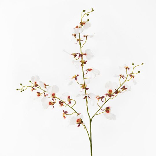Brighten up your interior space with this stunning artificial orchid dancing stem in white, made from the finest materials it is amazingly realistic. Style this faux orchid dancing simply in a beautiful bunch on their own or create an arrangement from Floral Interiors huge variety of artificial flowers for impact. With minimal maintenance this faux stem can offer enduring beauty, keep out of direct sunlight. This artificial orchid dancing is in our ‘Real Touch’ range which means the flowers have a realistic soft “feel”, almost natural.