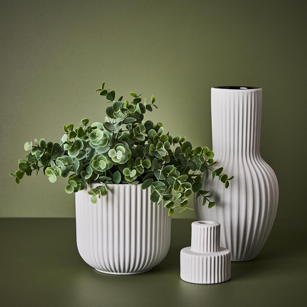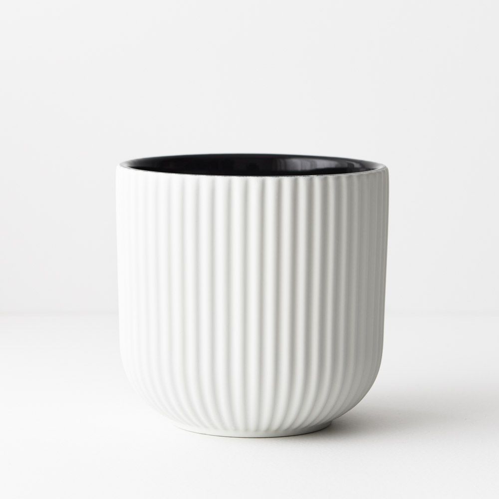 Our Annix Pot in White has a satin matte coating with a soft velvet feel and a high gloss black glaze inside. It’s not only eye-catching on its own, but pairs perfectly with our extensive range of artificial plants and greenery to create an eccentric appearance in any home or office. This ceramic pot is handmade, due to the nature of handmade items there may be slight variations in the size, surface texture, glaze consistency, colour or tone of the pots. This pot is suitable for indoor use and does not have a drainage hole.