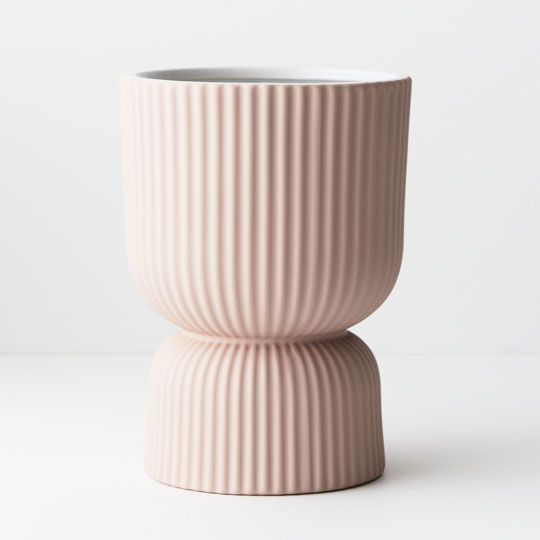 Our Palina Pot in Light Pink has a satin matte coating with a soft velvet feel and a high gloss white glaze inside. It's not only eye-catching on its own, but pairs perfectly with our extensive range of artificial plants and greenery to create vibrance in any home or office. This ceramic pot is handmade, due to the nature of handmade items there may be slight variations in the size, surface texture, glaze consistency, colour or tone of the pots. This pot is suitable for indoor use and does not have a drainage hole.