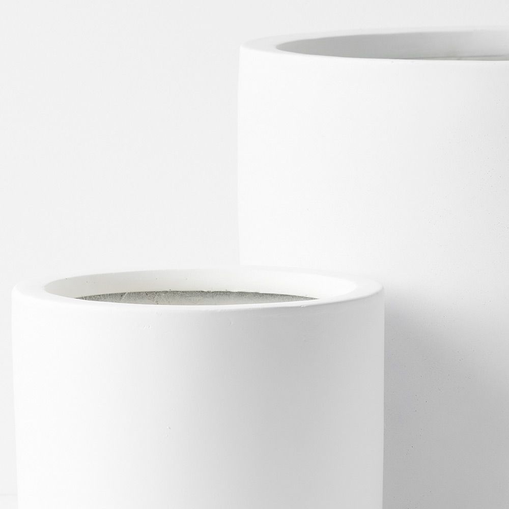 Our pot cylinder in white are the perfect modern vessel to style your plants in any space. These pots are handmade from polystone, due to the nature of handmade items there may be slight variations in the size, surface texture or colour. Suitable for indoor or outdoor use they all come with a drainage hole.