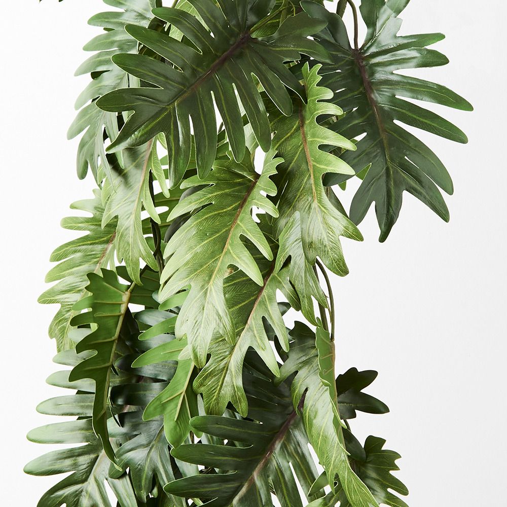 Brighten up your interior space and create beautiful textural arrangements with this Philodendron Selloum Hanging Bush. Easily style this Philodendron Selloum Hanging Bush mixing it with other stems and bushes from our artificial collection. This faux Hanging Bush in green will bring lasting beauty. Be sure to keep out of direct sunlight. This artificial philodendron hanging bush is in our ‘Real Touch’ range which means the leaves and foliage have a realistic soft “feel”, almost natural.