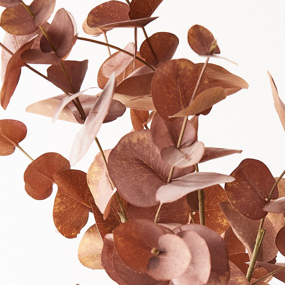 The artificial natives in the floral interiors range are amazingly life-like. The fine details, textures and colours of the eucalyptus silver dollar bush in rust are amazing, so true to life that it is difficult to note the difference. The faux eucalyptus silver dollar bush can easily be styled in a vase on its own or mixed with other artificial stems from our extensive range of natives. You can enjoy long lasting beauty with minimal maintenance be sure to keep out of direct sunlight. This artificial eucalyptus silver dollar bush is in our ‘Real Touch’ range which means the leaves and foliage have a realistic soft “feel”, almost natural.