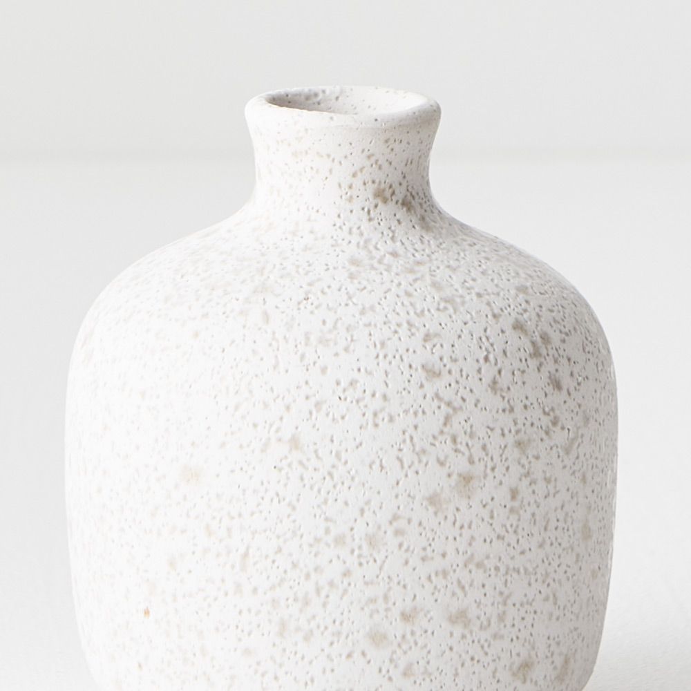 This ceramic vase greta in white is handmade, due to the nature of handmade items there may be slight variations in the size, surface texture, glaze consistency, colour or tone of the vase.