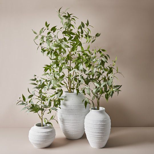 Floral Interiors artificial trees are designed and shaped to look like the real thing, without all the maintenance. This eucalyptus tree comes premade in a plastic pot, ready to be placed in a stylish pot of your choice. (Not suitable for outdoor use). Select from our range of complimenting pots in varying styles, colours and designs to suit any decor.